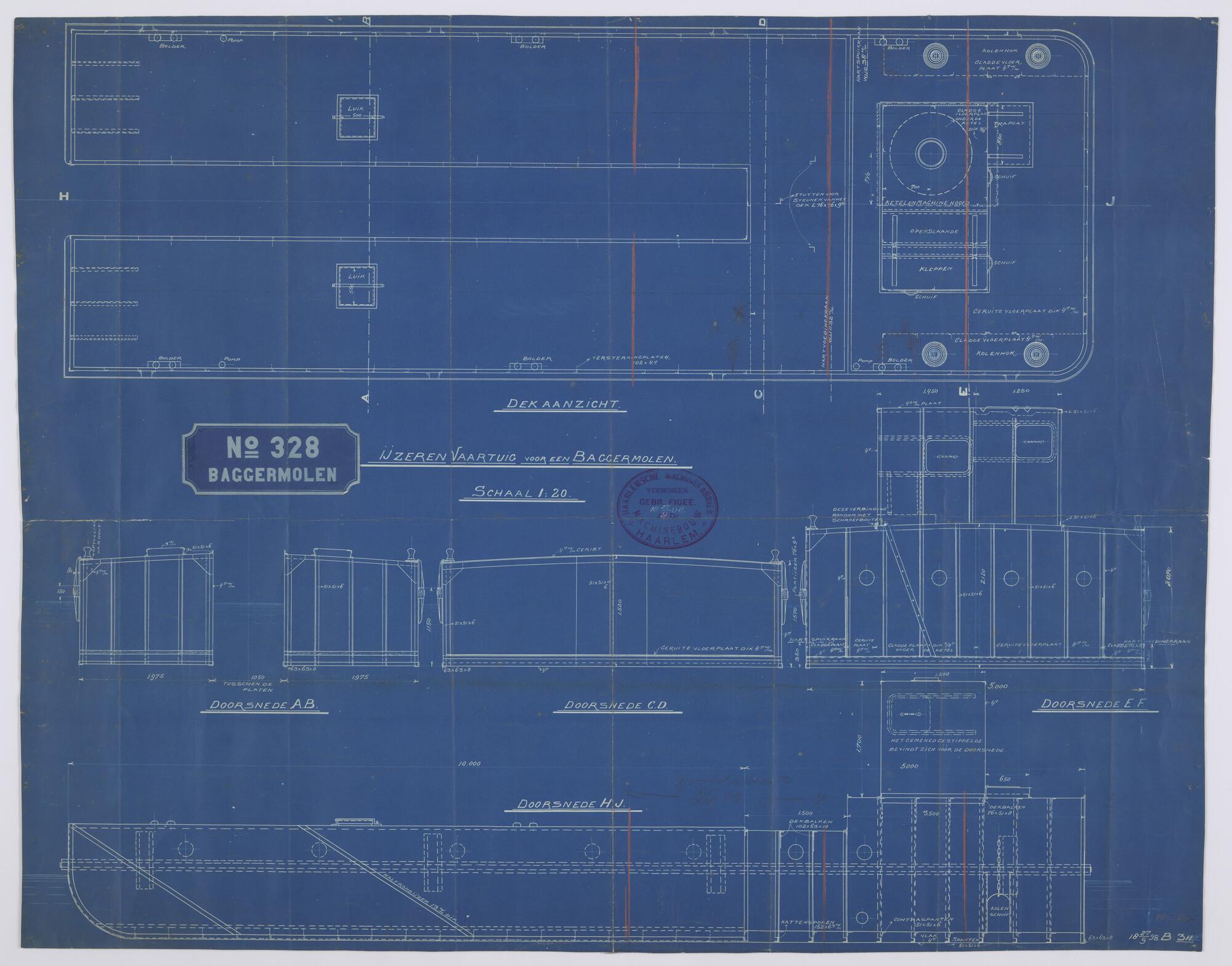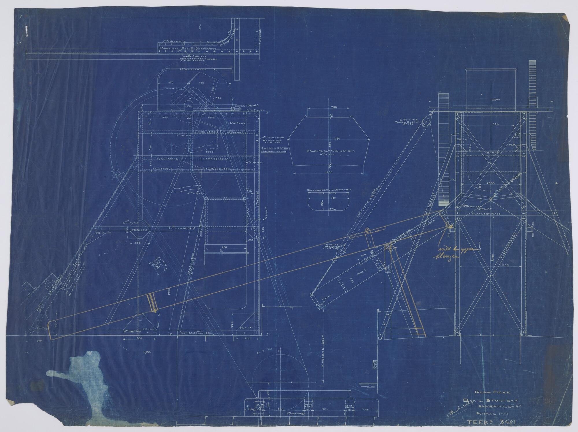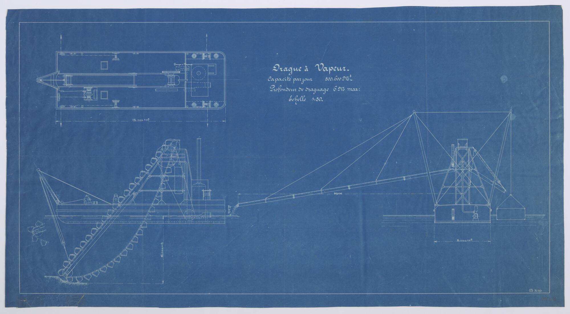 Algemeen plan en constructieplan van een baggermolen