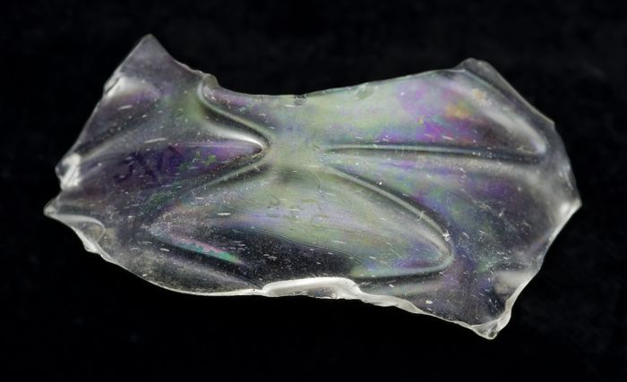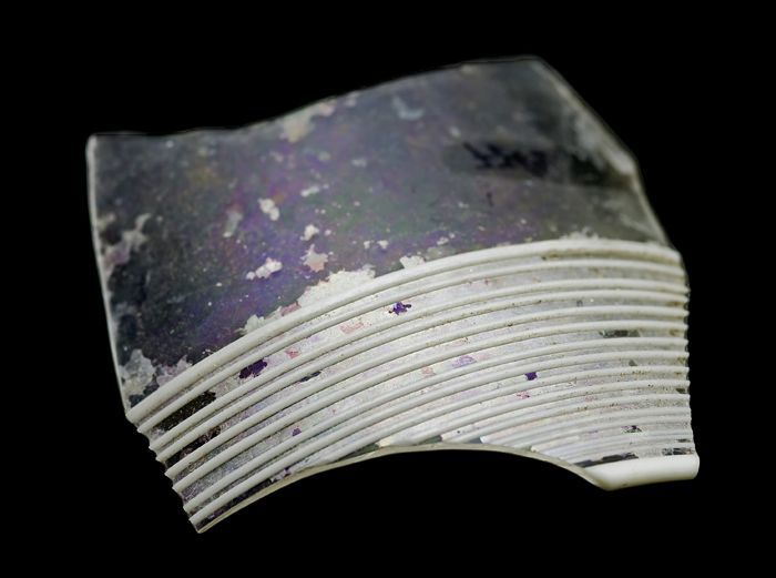 Acht fragmenten van bekerglazen, versierd in reliëfd...