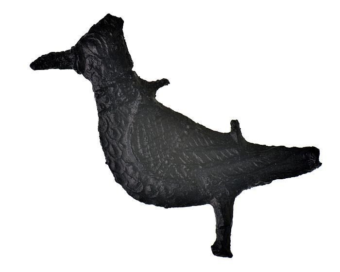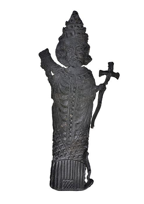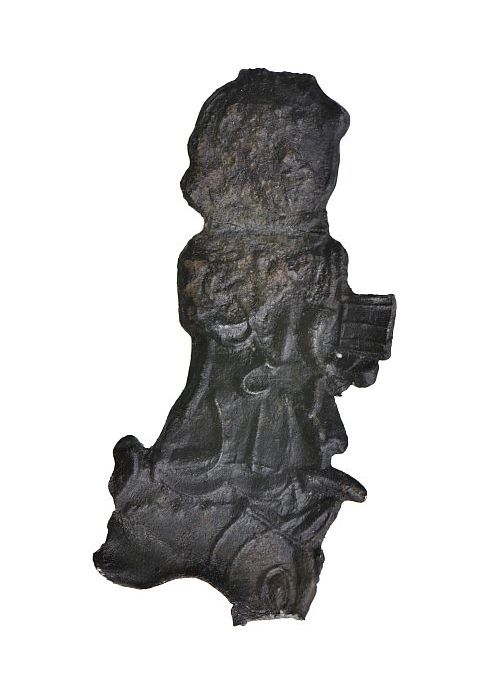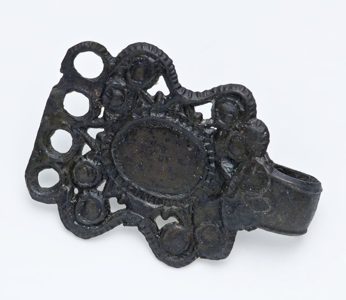 Tinnen speld ofwel broche, in de vorm van een luit (?)