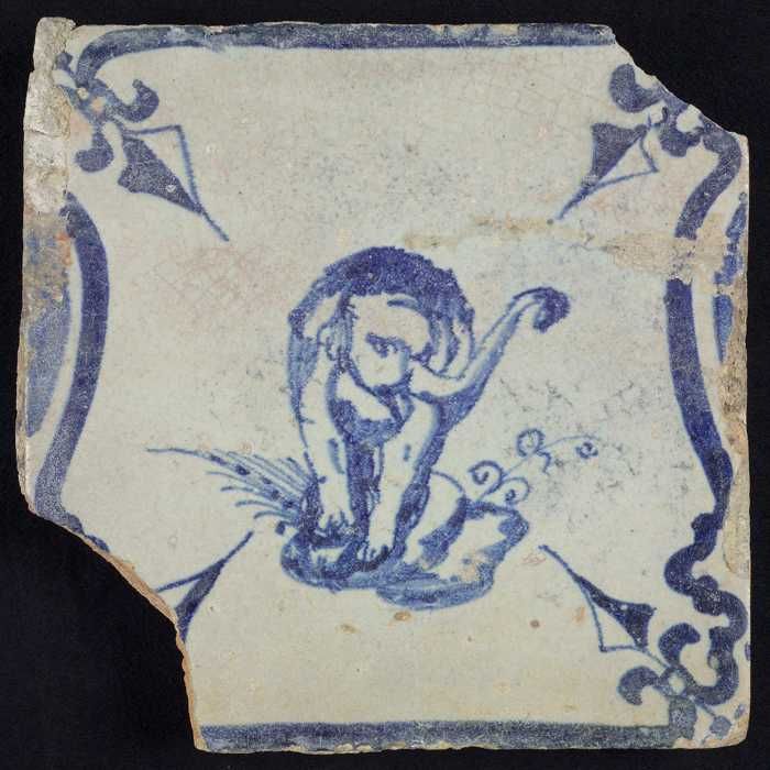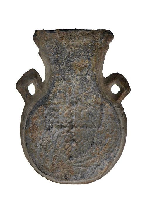 Tinnen insigne, ampul met twee oogjes met onherkenba...