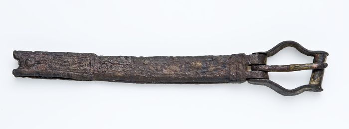 Lange riemtong, eindigend in een ingesnoerde gesp