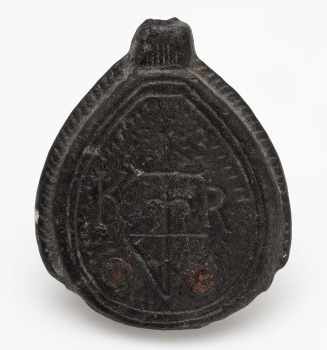 Riemtong met heilige en eigendomsmerk, beslag met hu...