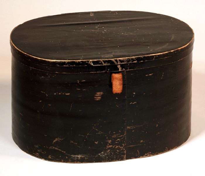 Ovale hoge hoedendoos van zwart gelakt hout, met los...