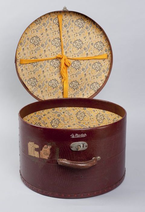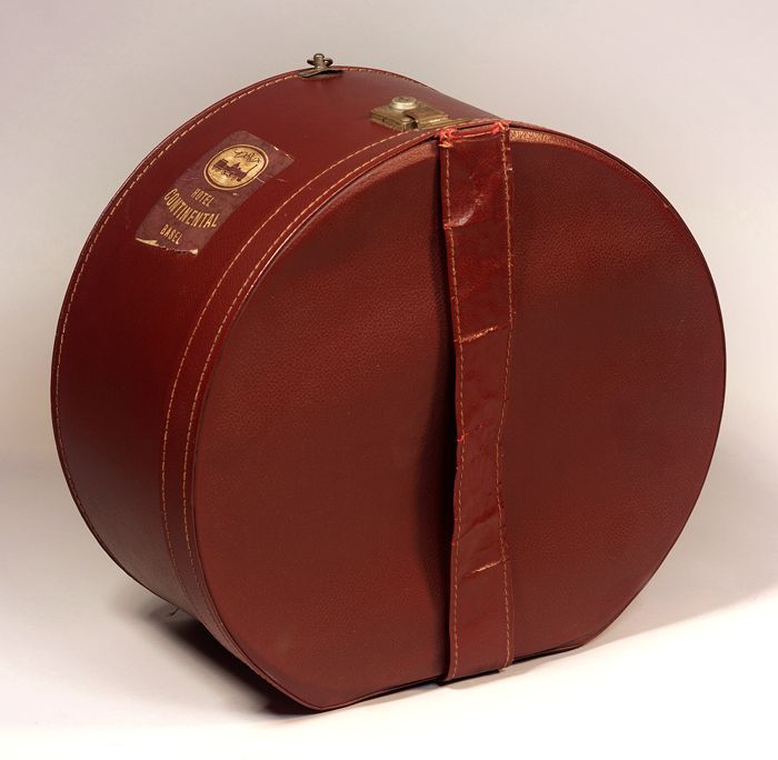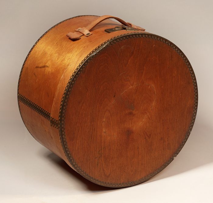 Ronde hoedendoos, reiskoffer, één afgeplatte zijde, ...