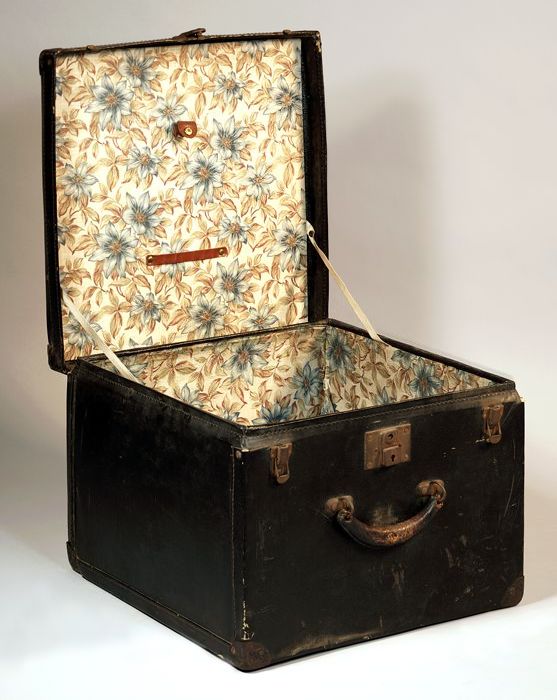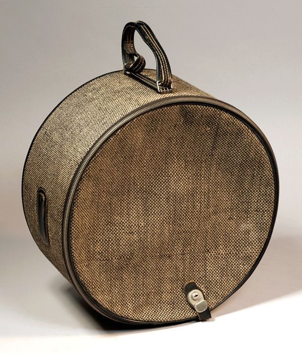 Ronde hoedendoos, handvat, slot, geheel bekleed met ...
