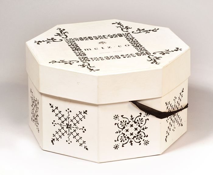 Achtkantige witte hoedendoos (A), los deksel (B), va...