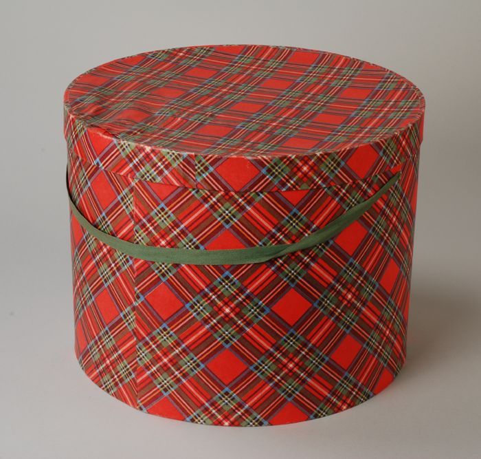 Ronde hoge hoedendoos, met schotse ruit dessin, groe...