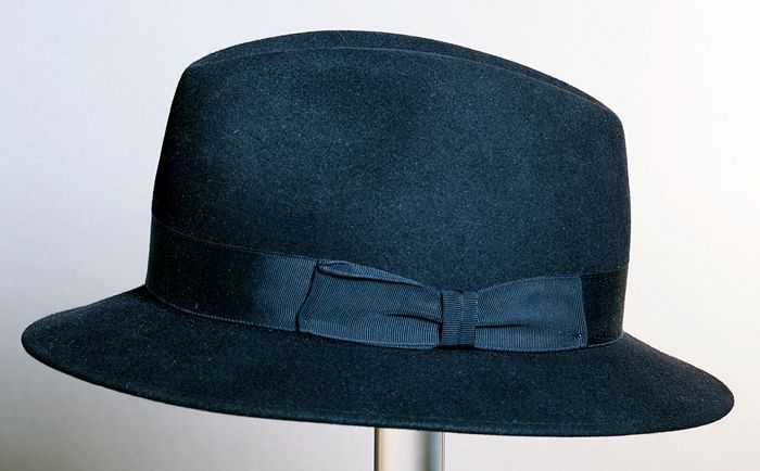 Herenhoed van zwart vilt met ripssatijnen band om de...