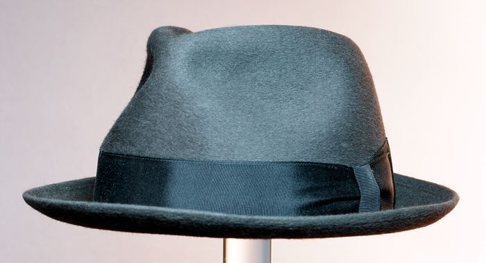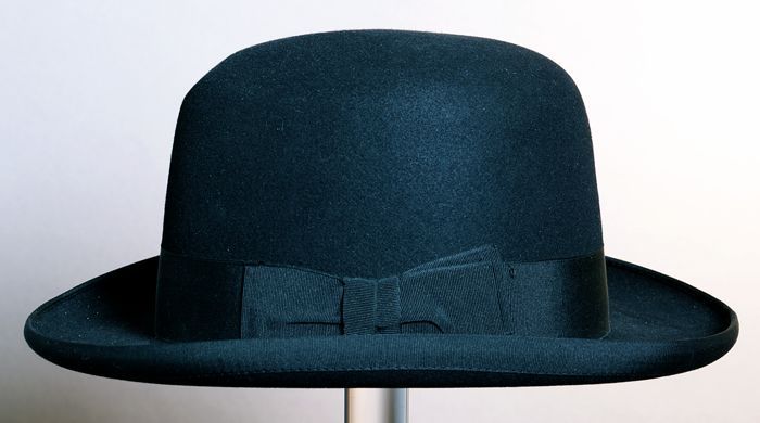 Herenhoed van zwart vilt met gedeukte bol en aflopen...