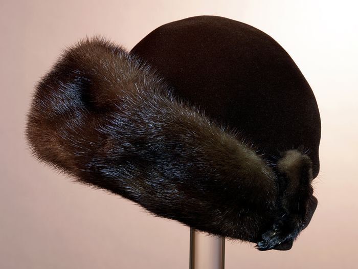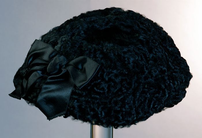 Dameshoed, rond model zonder rand, zwart astrakan me...
