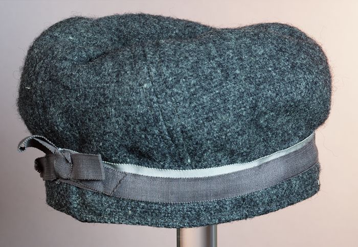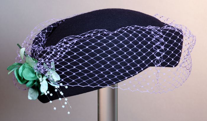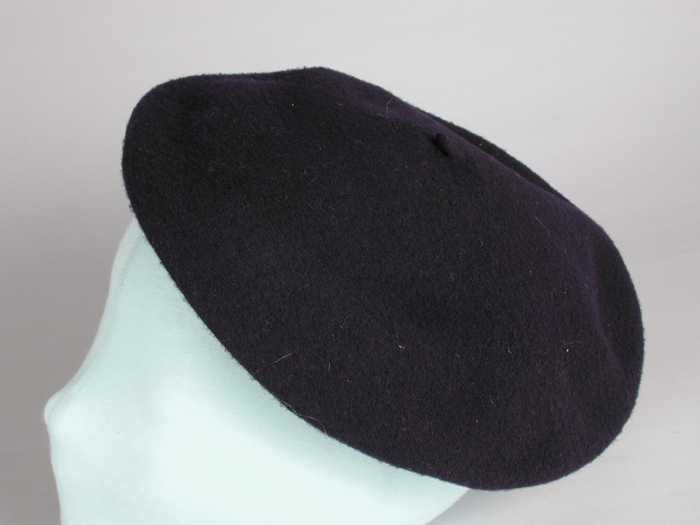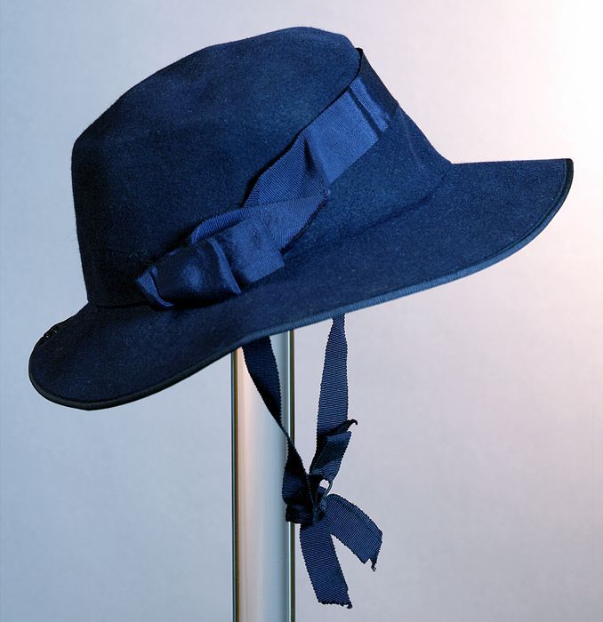 Kinderhoedje van donkerblauw vilt, verzonken bol, af...