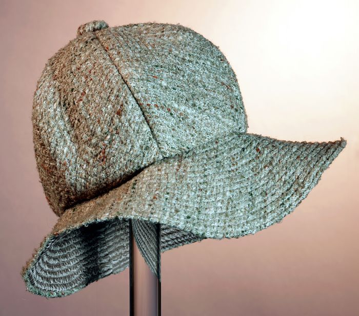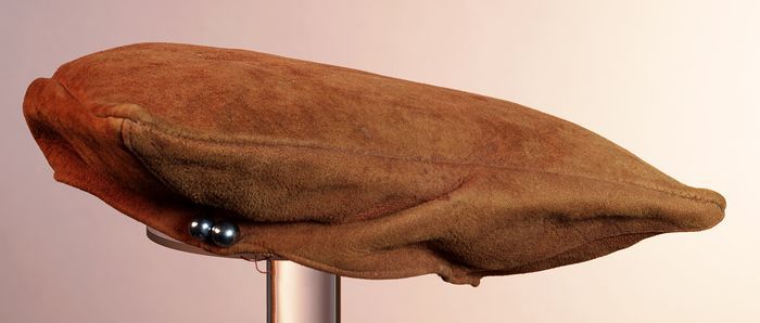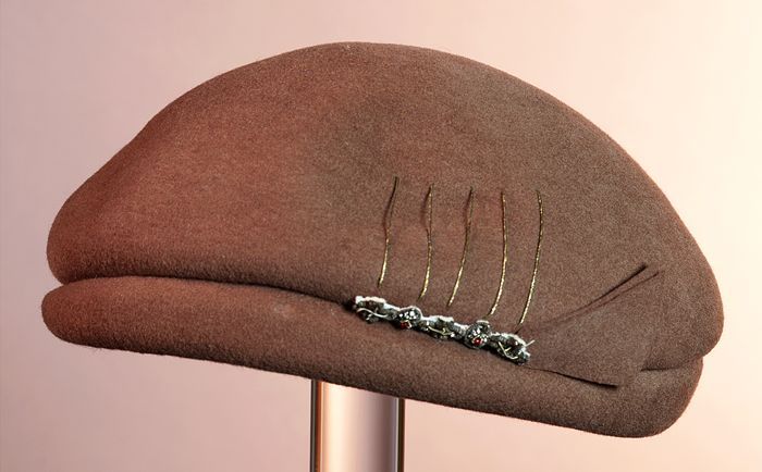 Rond dopje van roodbruin vilt, garnering gouddraad, ...