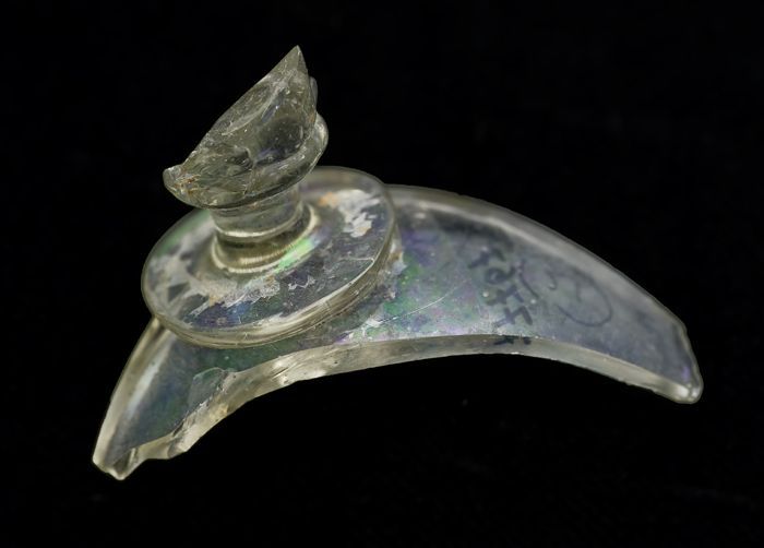 Veertien fragmenten van beker- of kelkglazen, gladde...