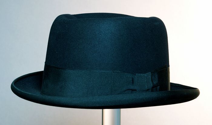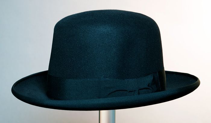 Herenhoed van zwart vilt met zwart ripssatijnen band...