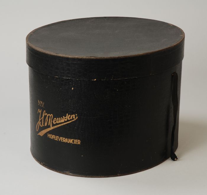 Ronde hoedendoos (A), scharnierend deksel, gelakt ho...