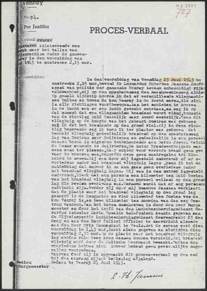Proces-Verbaal No. 94 Gemeente Politie Venray 24 jun...