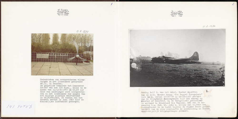 Foto monument met driebladige propeller.Tekst: "Gede...