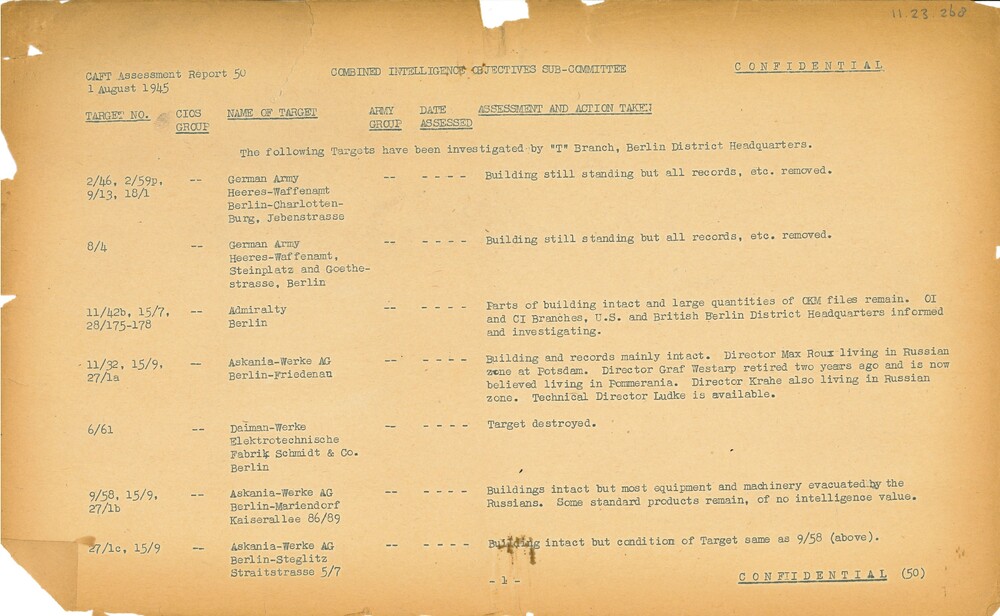 Combined Intelligence Objectives Sub-Committee Report