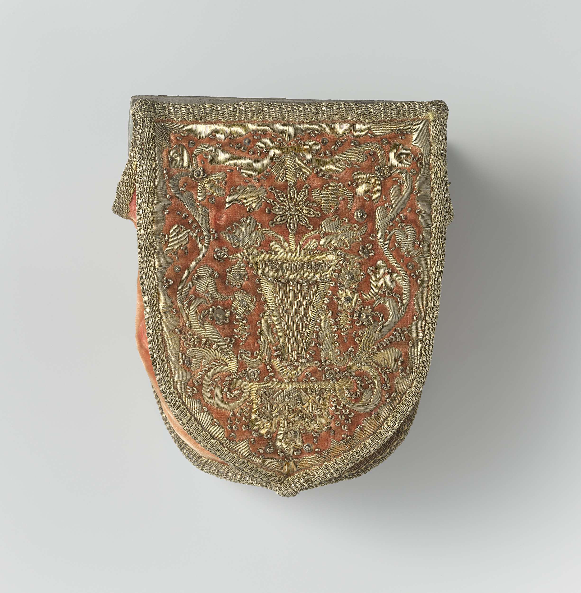 Beurs van koraalrood fluweel met op twee vlakken bor...