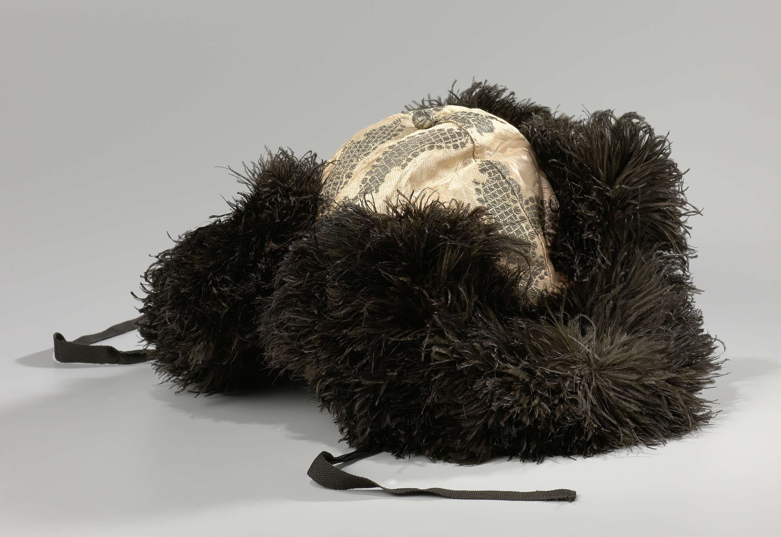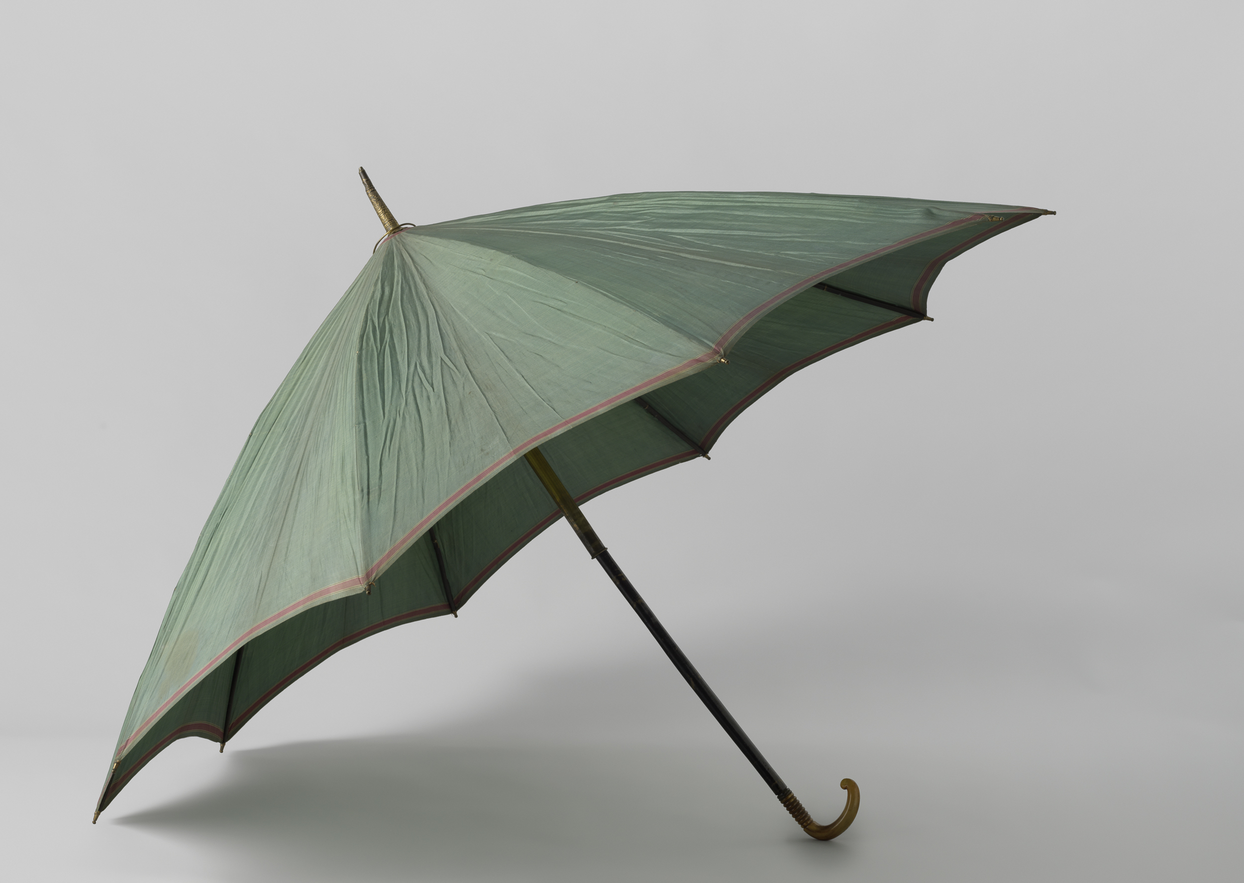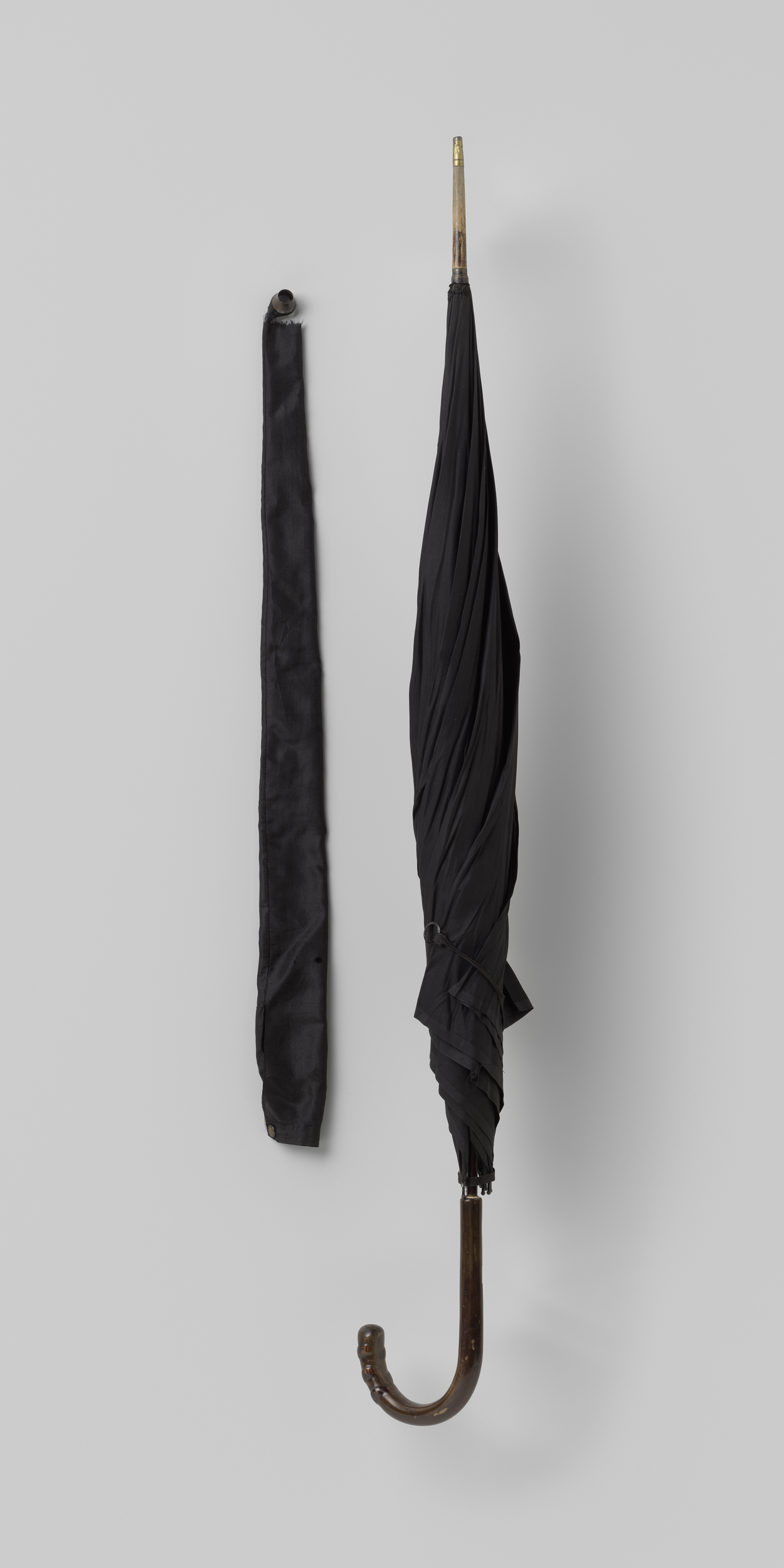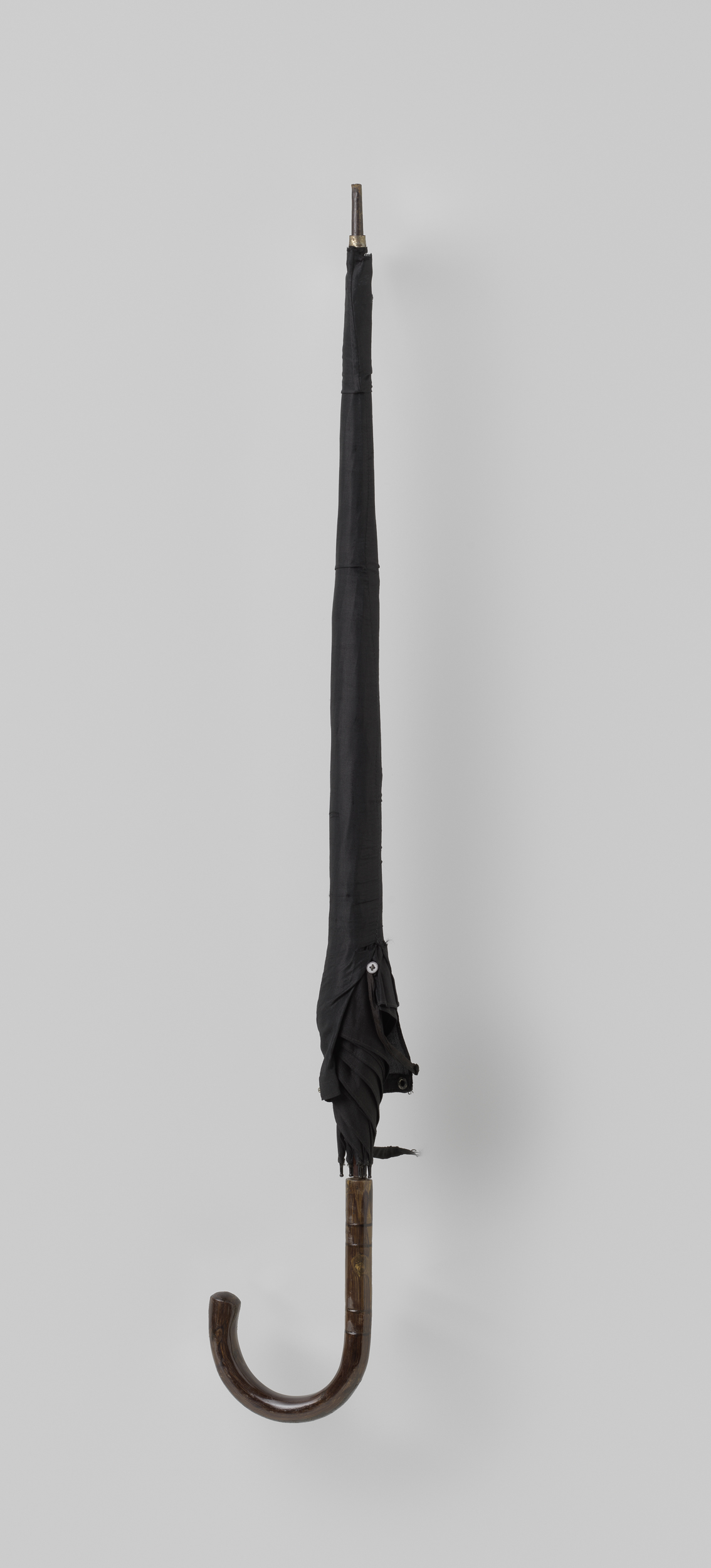 Paraplu met dek van effen zwarte zijde, op metalen s...