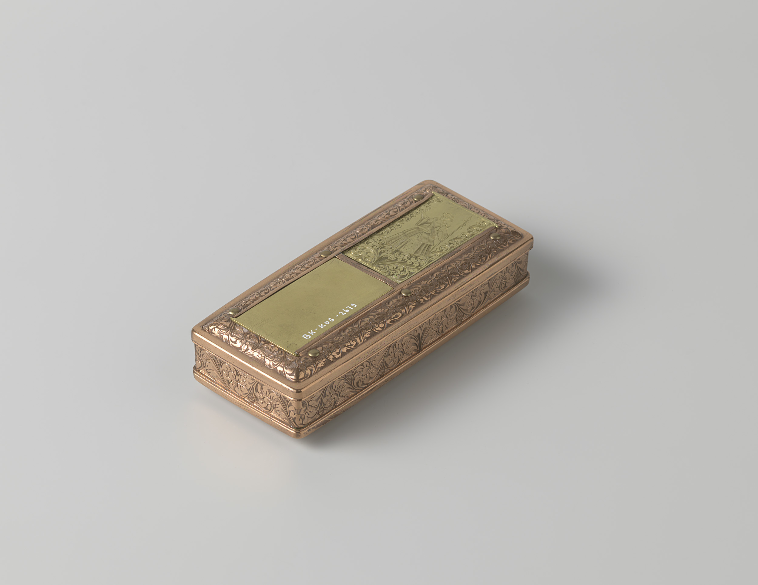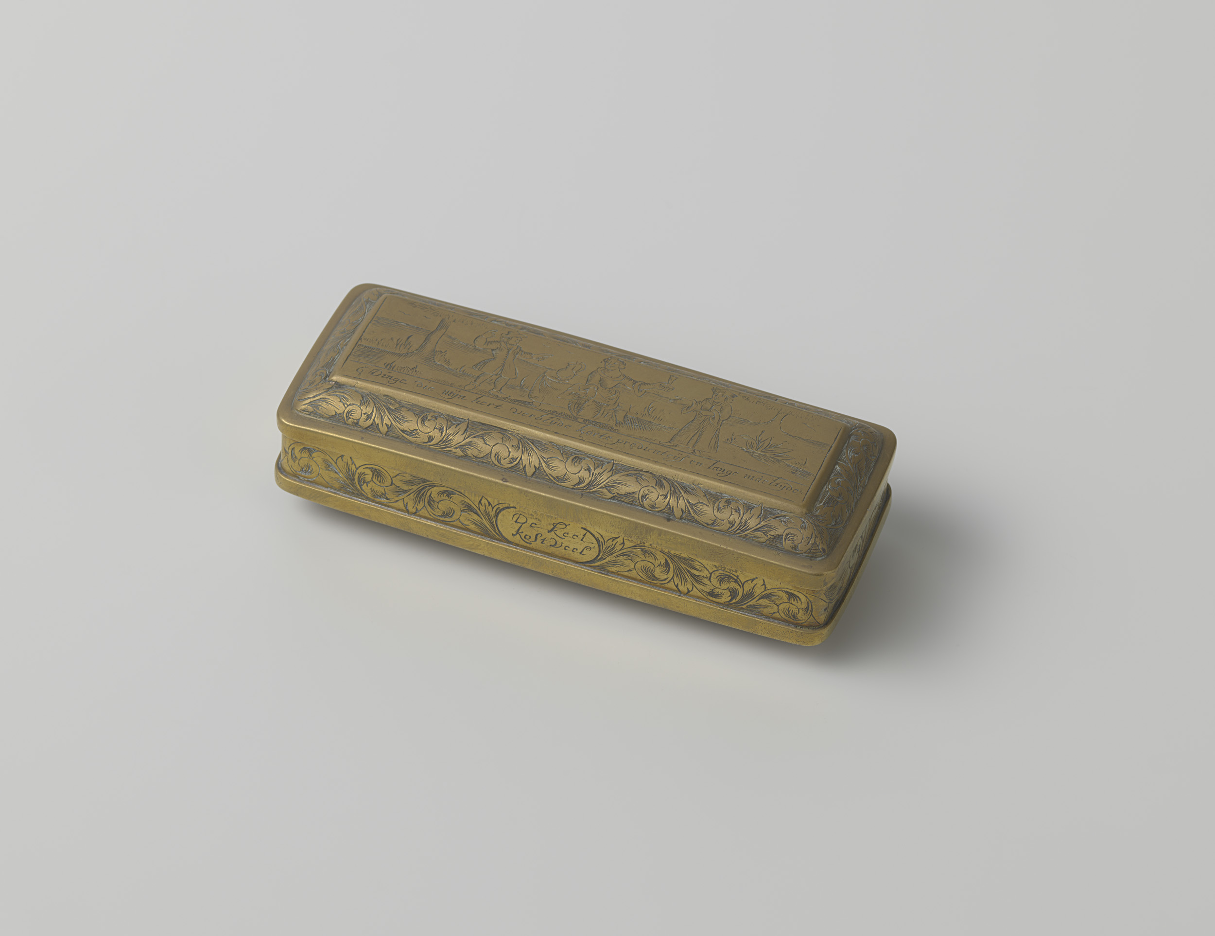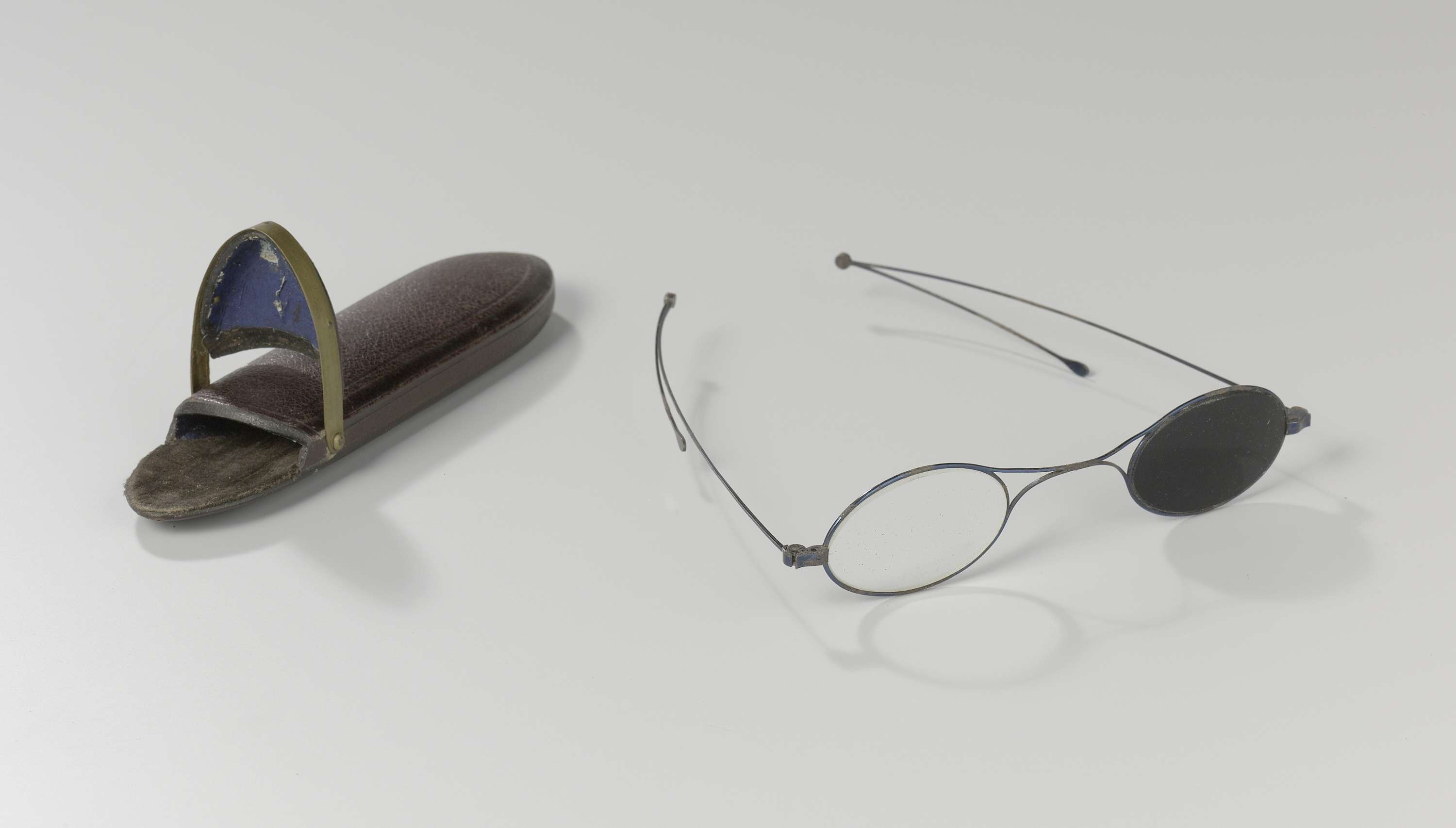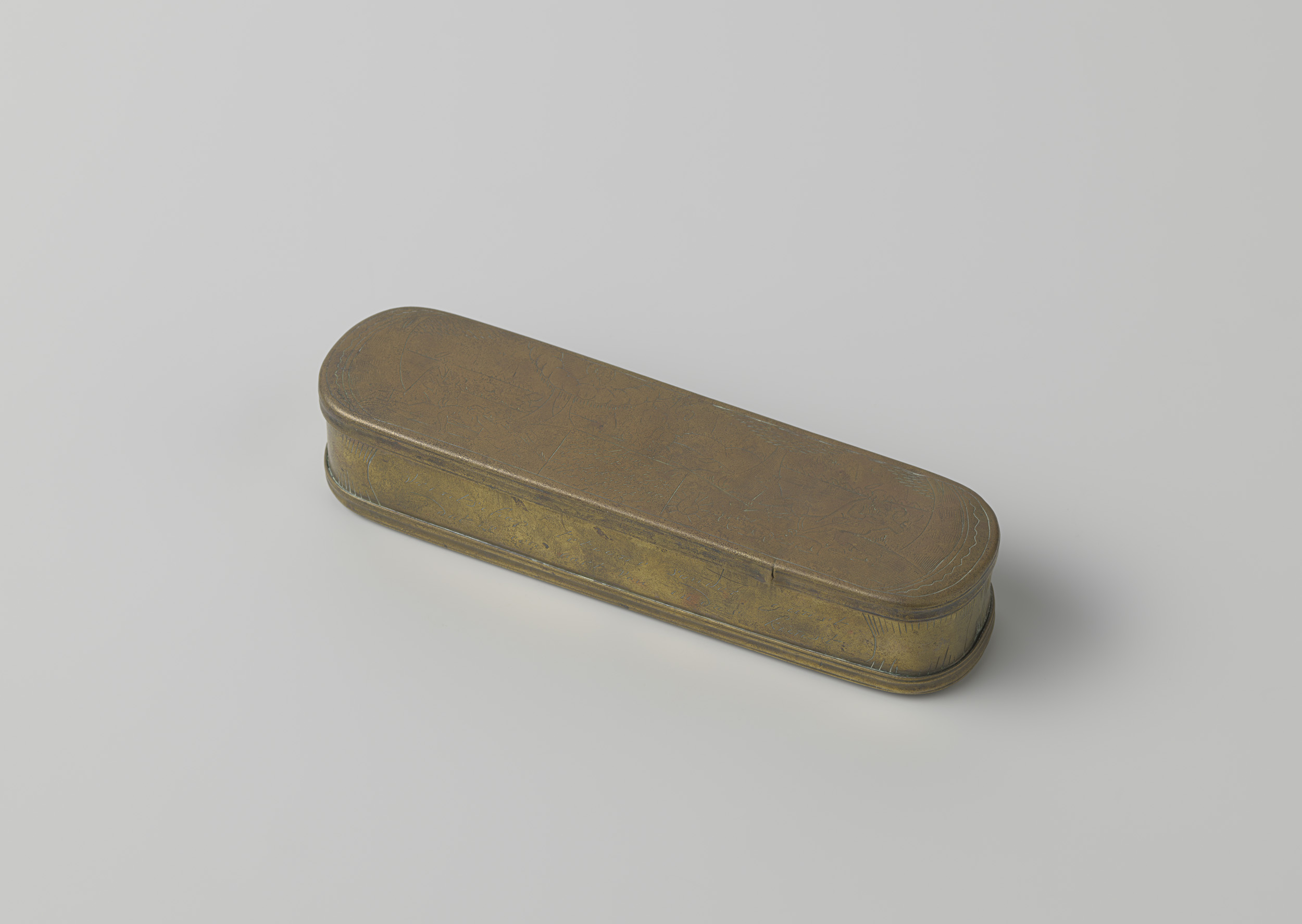 Brillenkoker in ovaalvorm, buitenzijde beplakt met l...