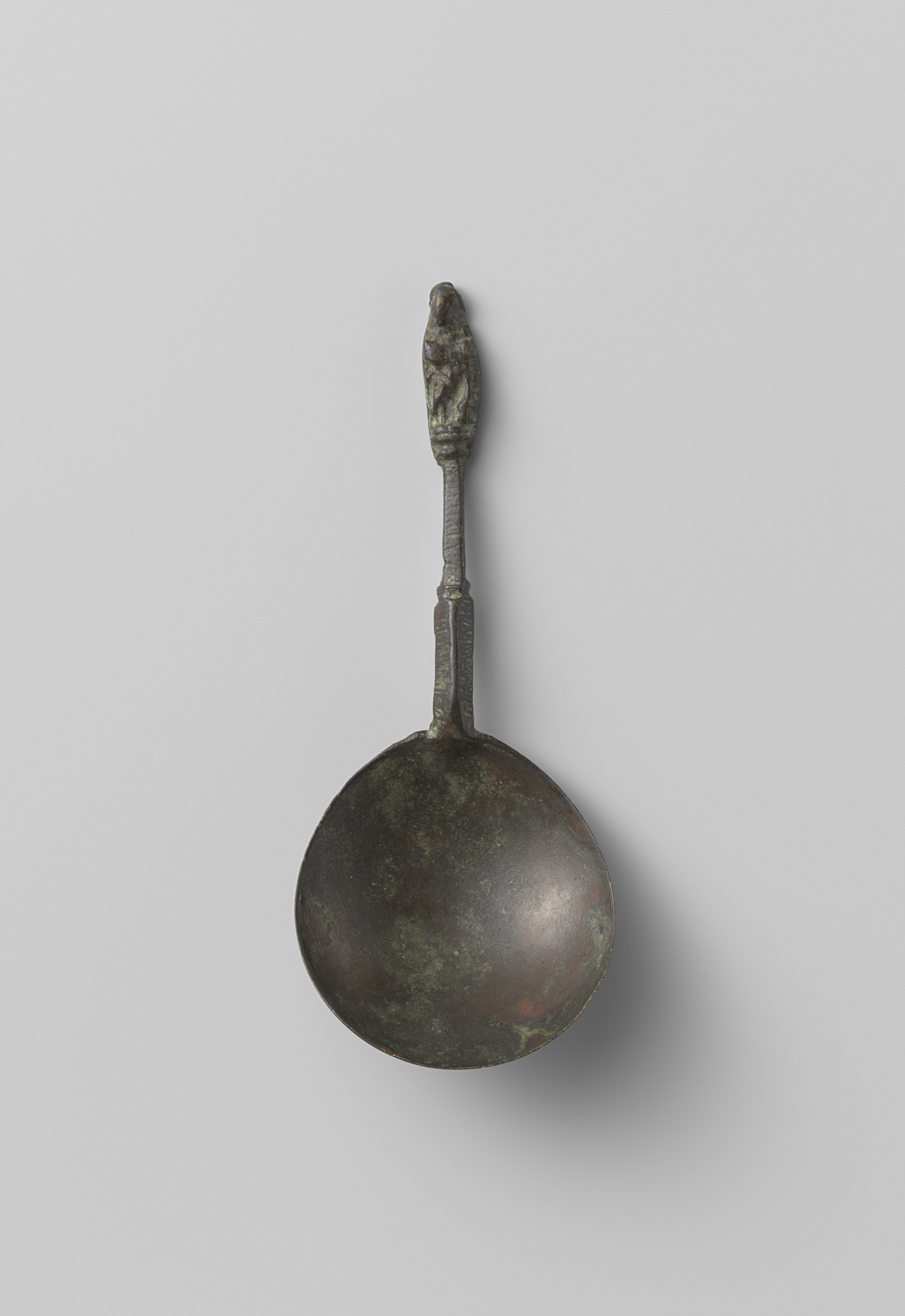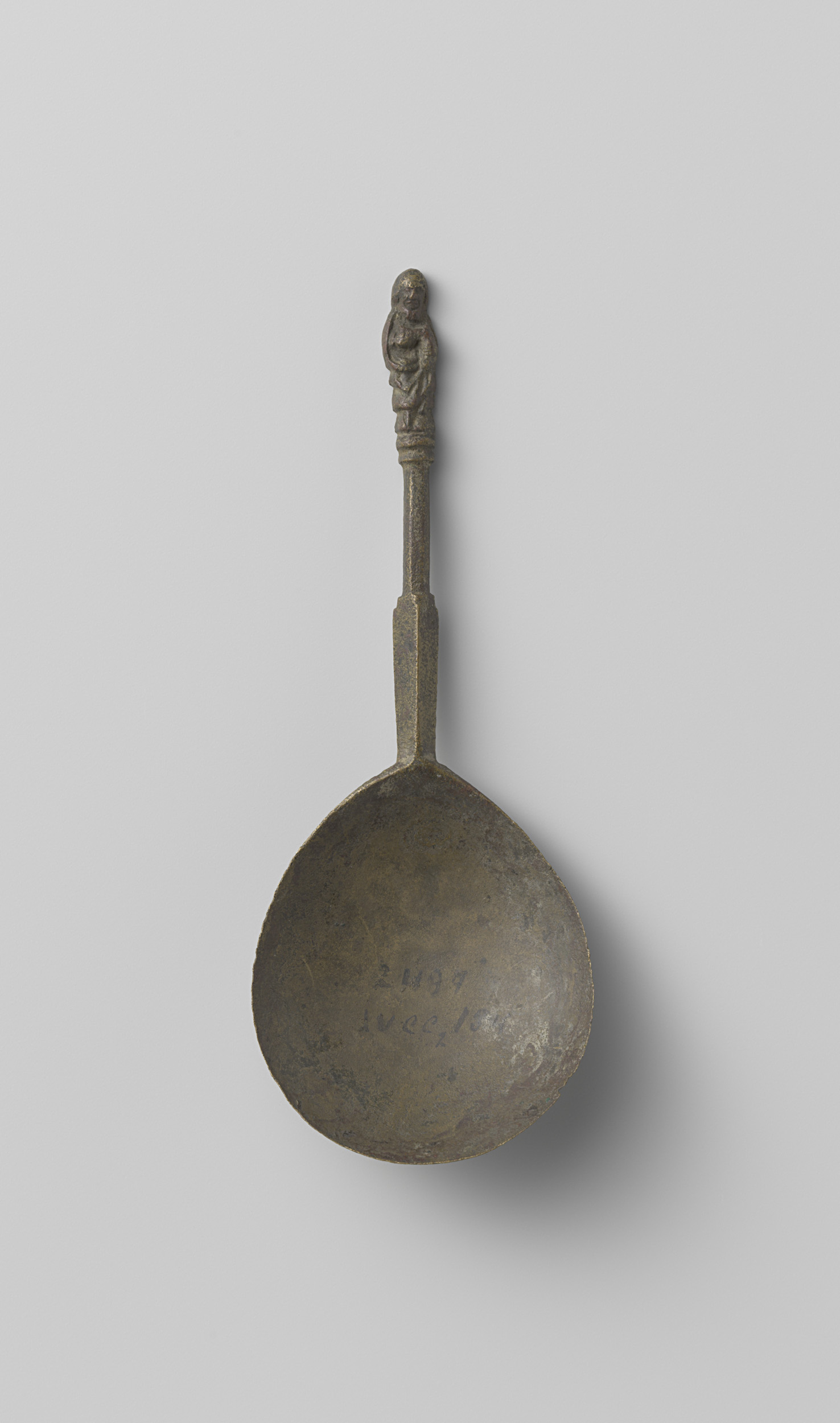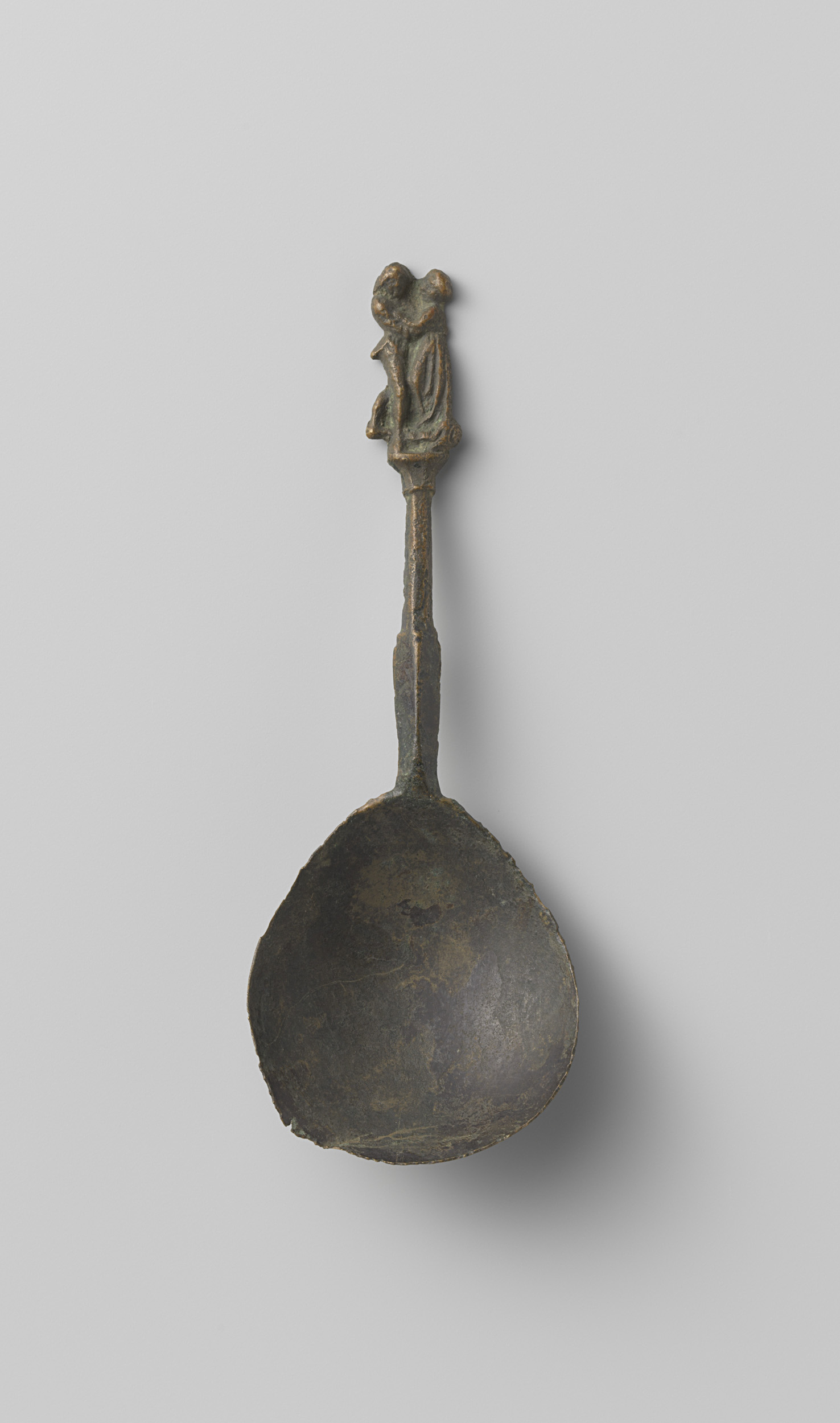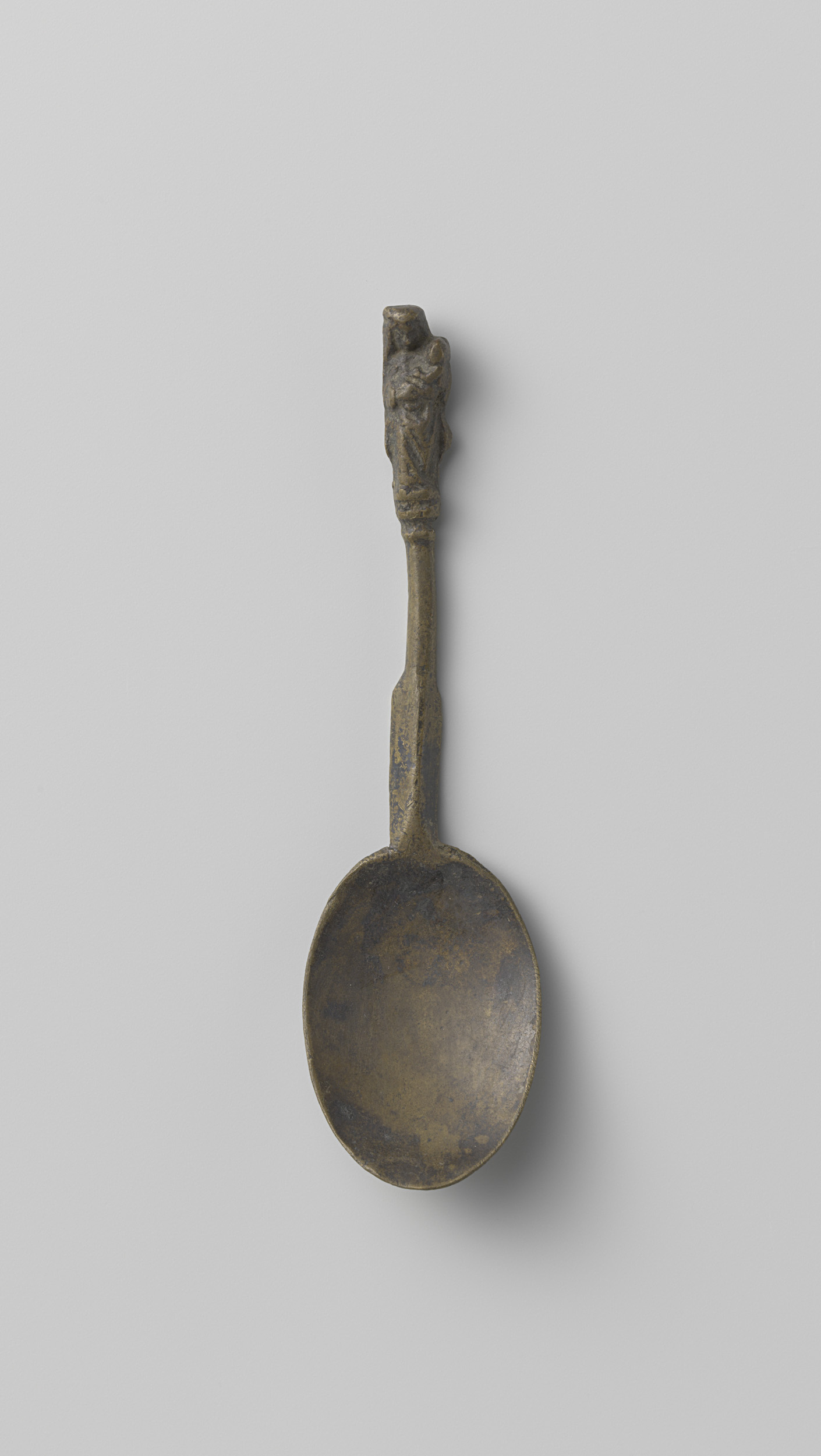 Lepel waarvan de steel bekroond wordt door een Maria...