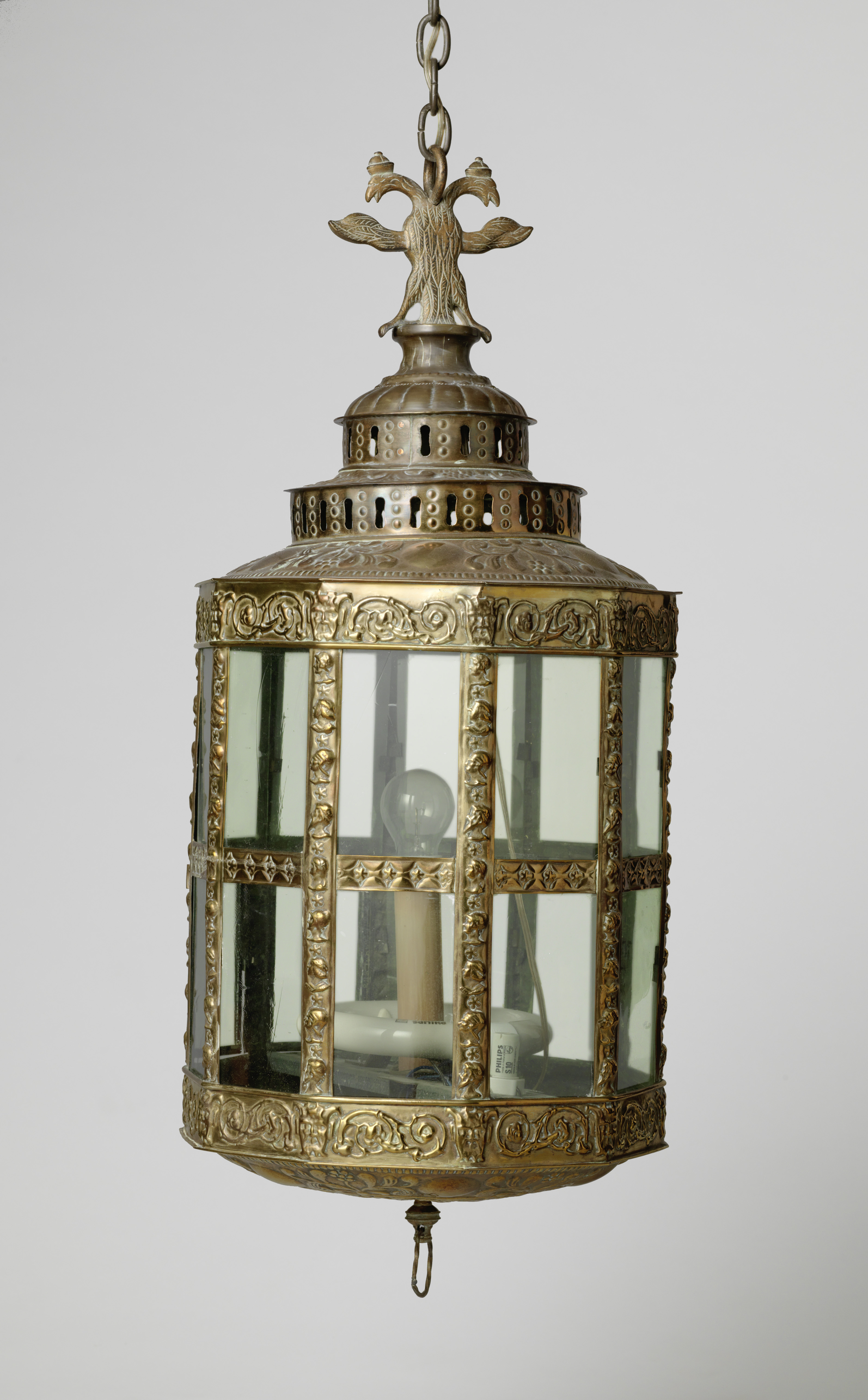 Lantaarn van koper, cirkelvormig, met twaalf ruiten ...