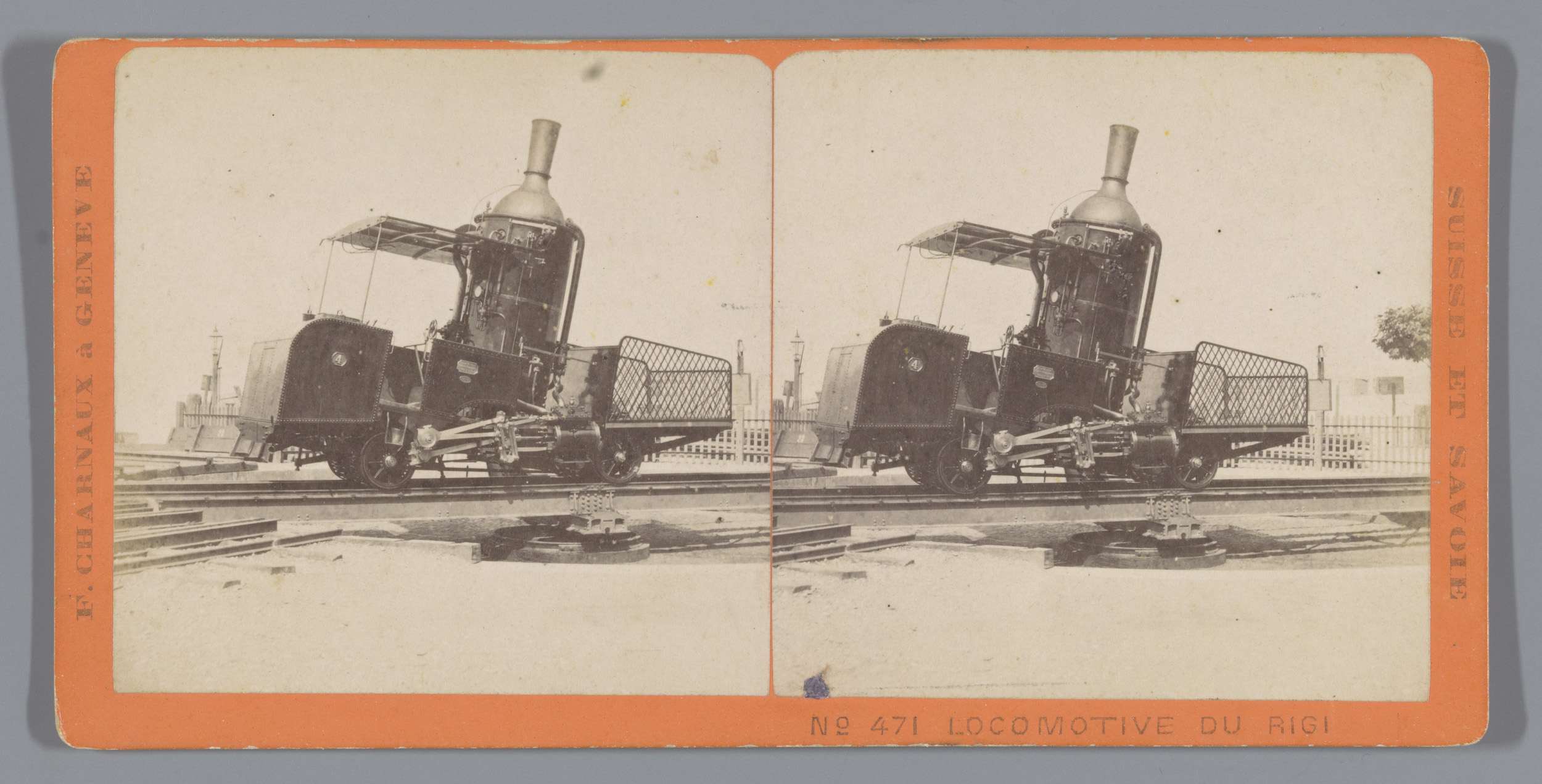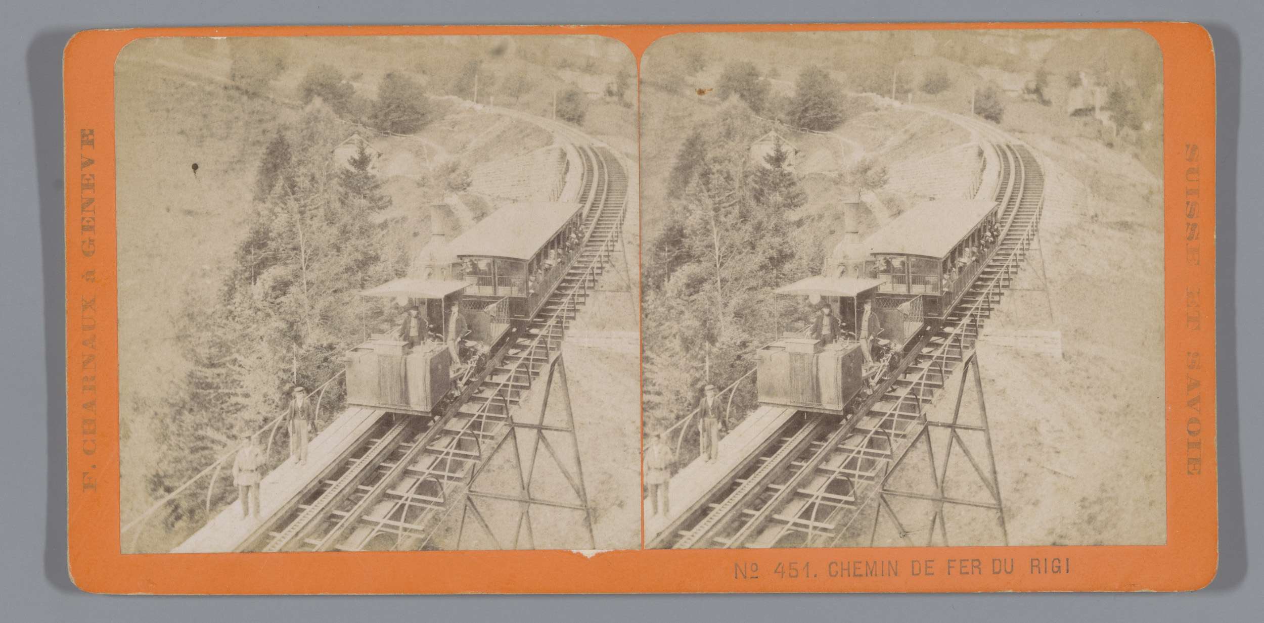 Spoorlijn op de Rigi, met op de voorgrond een trein