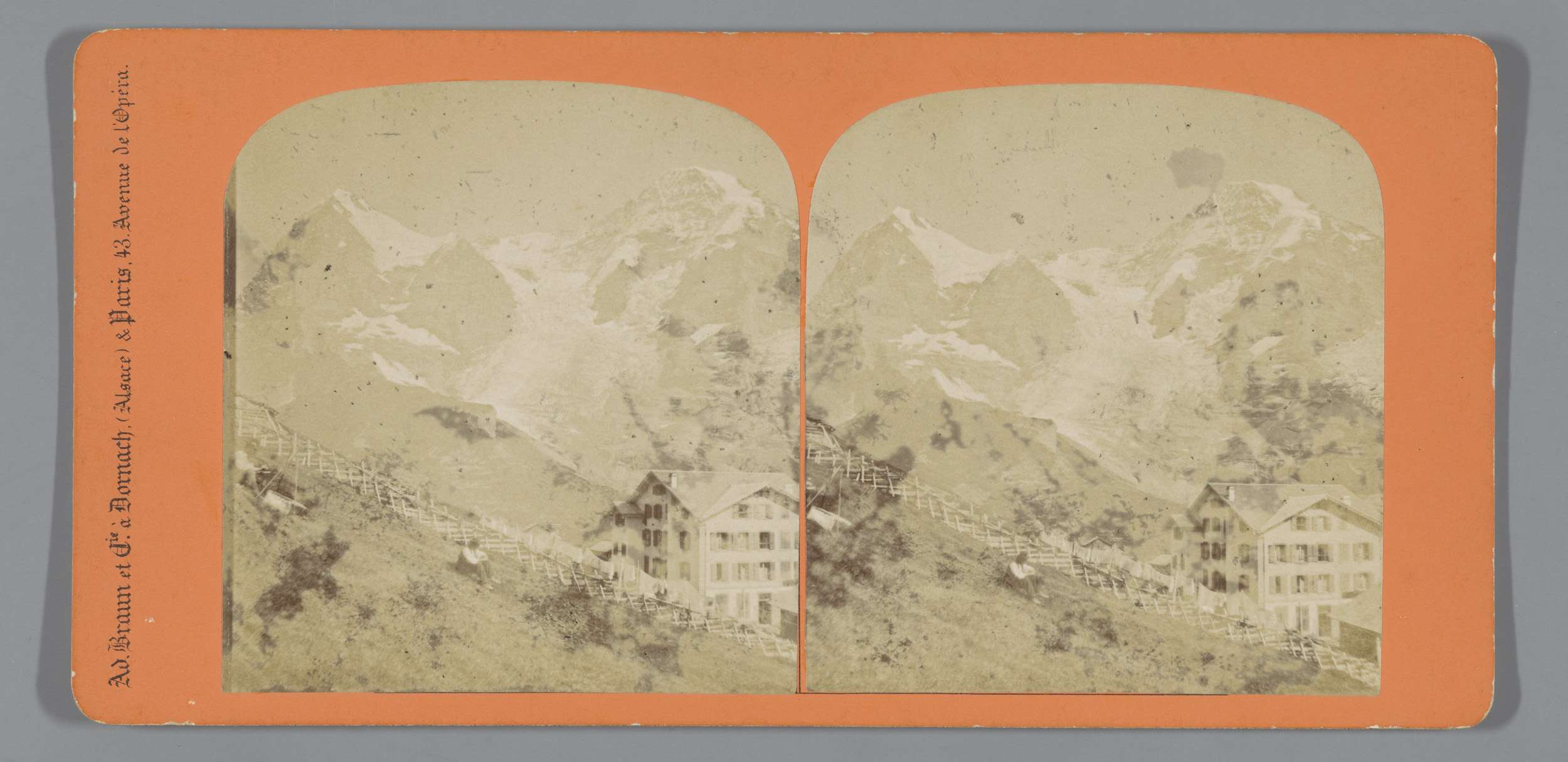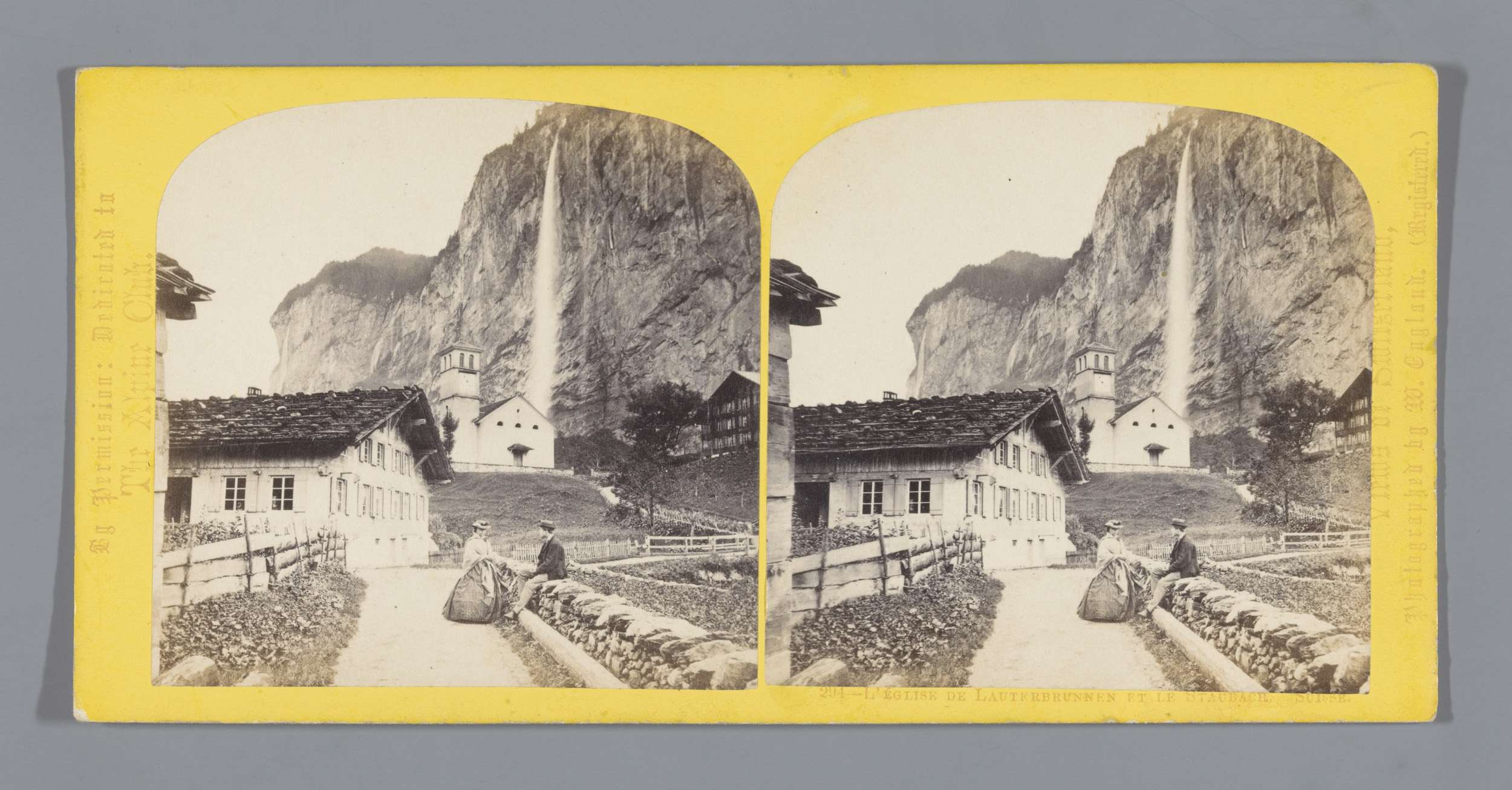 Gezicht op een kerk te Lauterbrunnen, met op de acht...