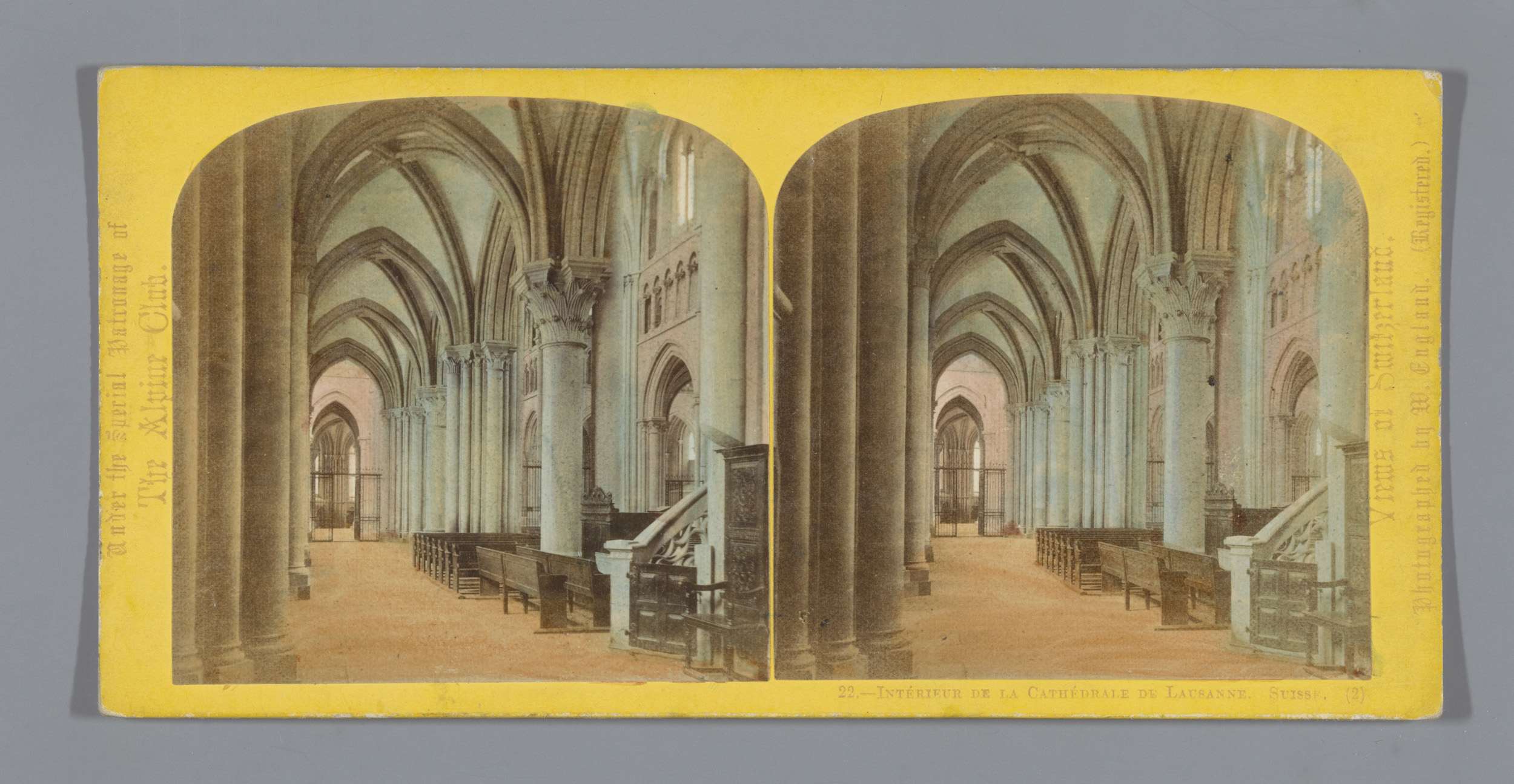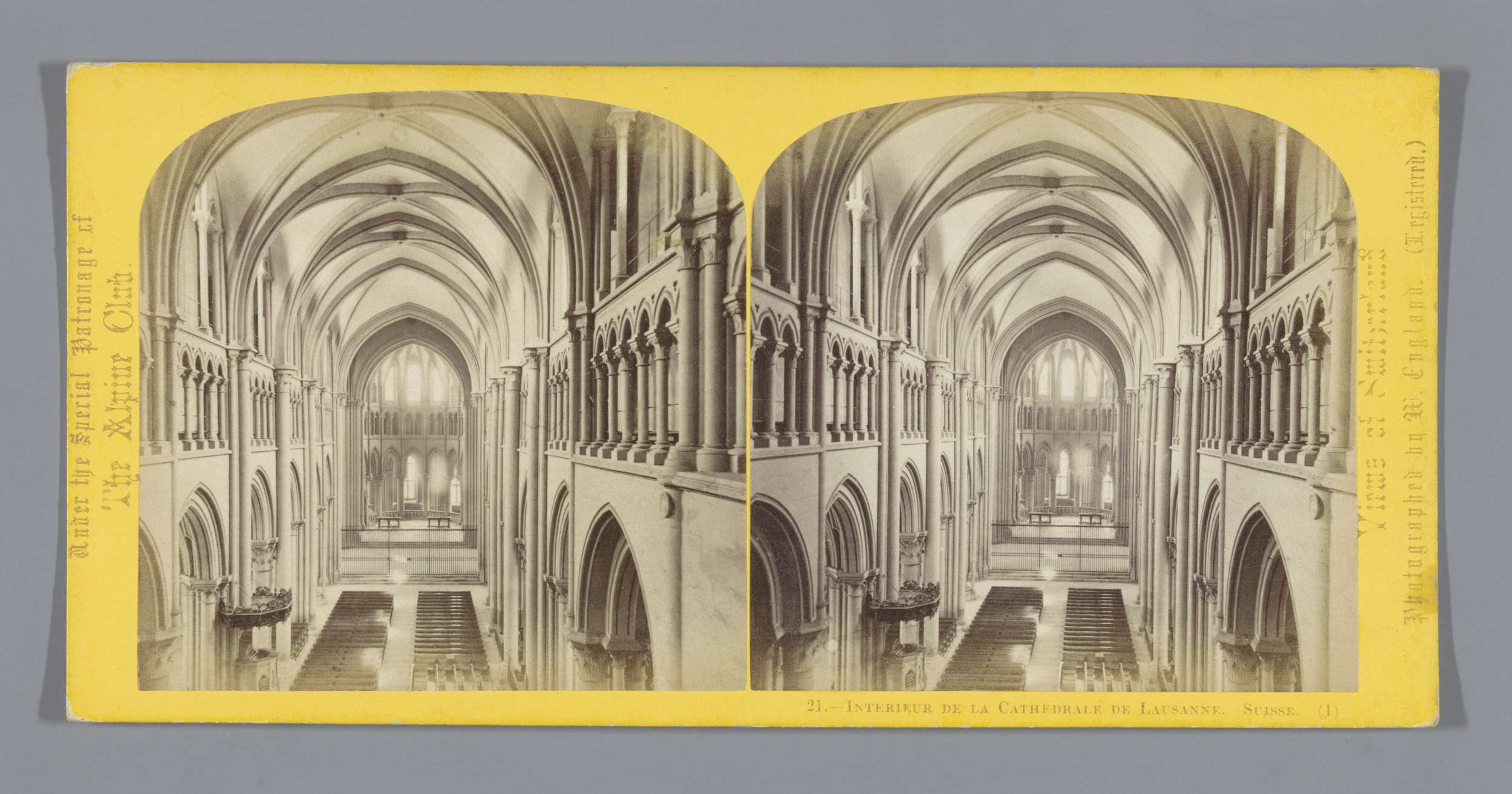 Interieur van de Kathedraal van Lausanne, met zicht ...