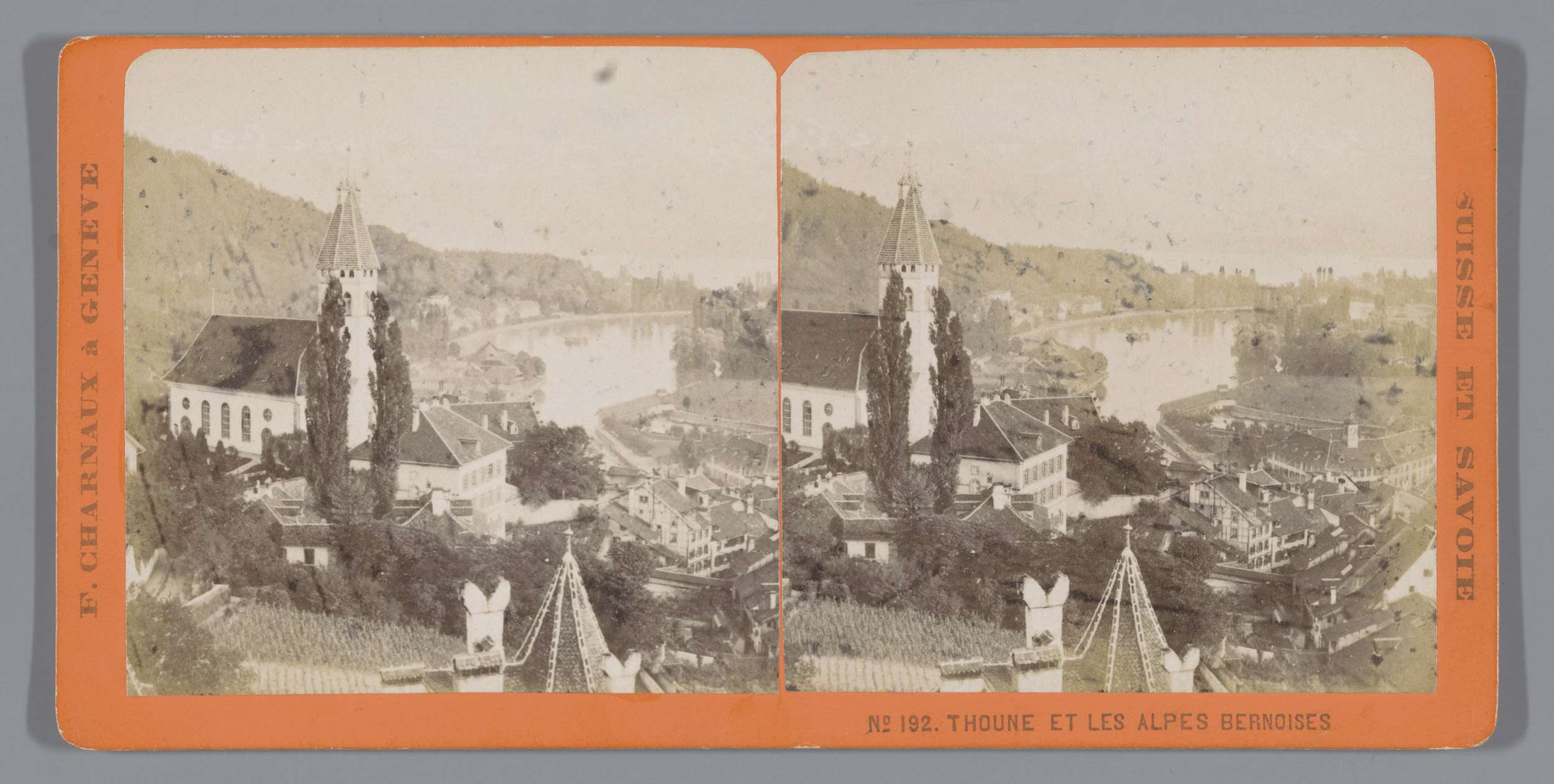 Gezicht op Thun aan de Thunersee, Zwitserland