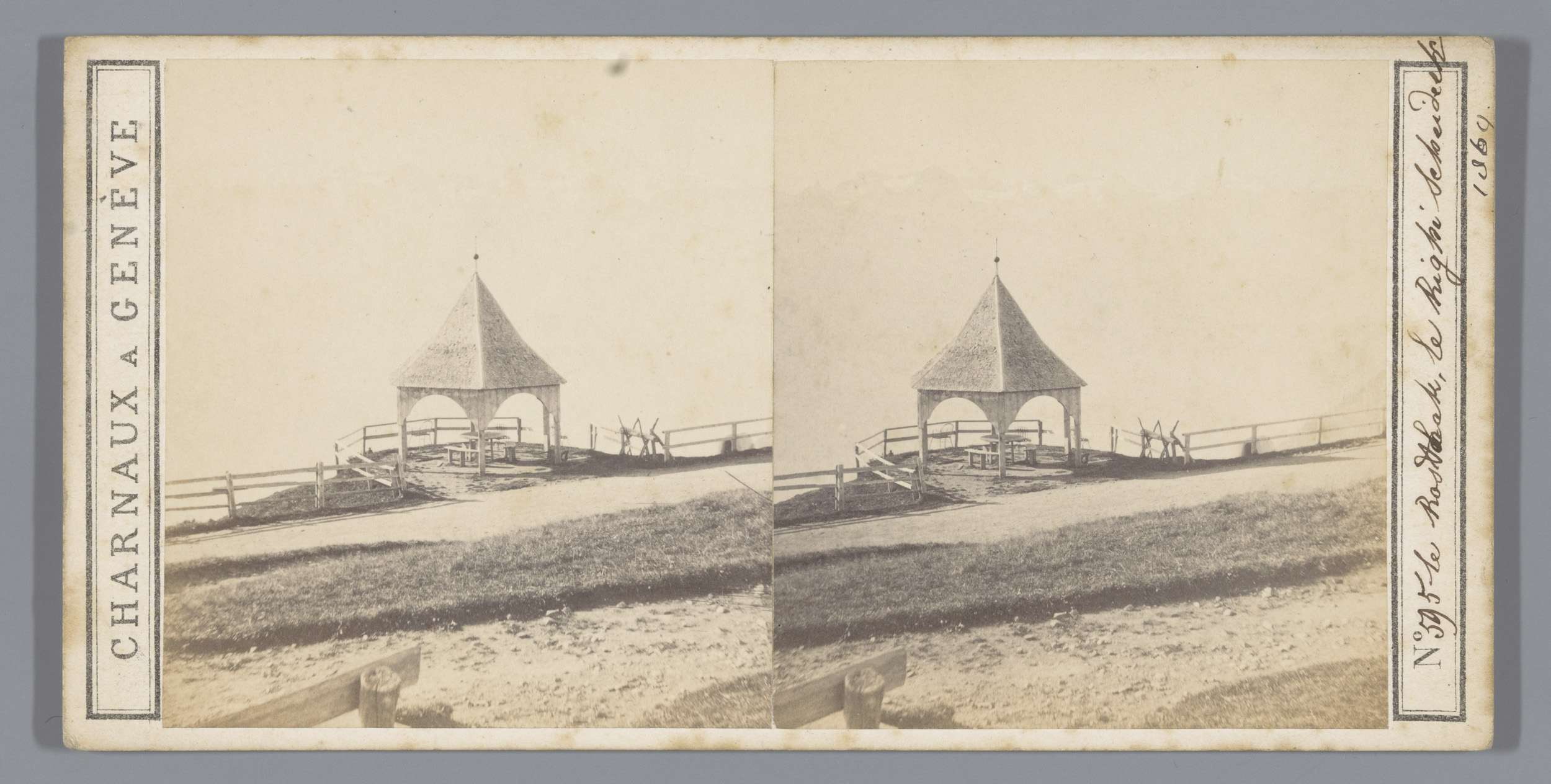 Gezicht op een overdekt uitkijkpunt op de Rigi