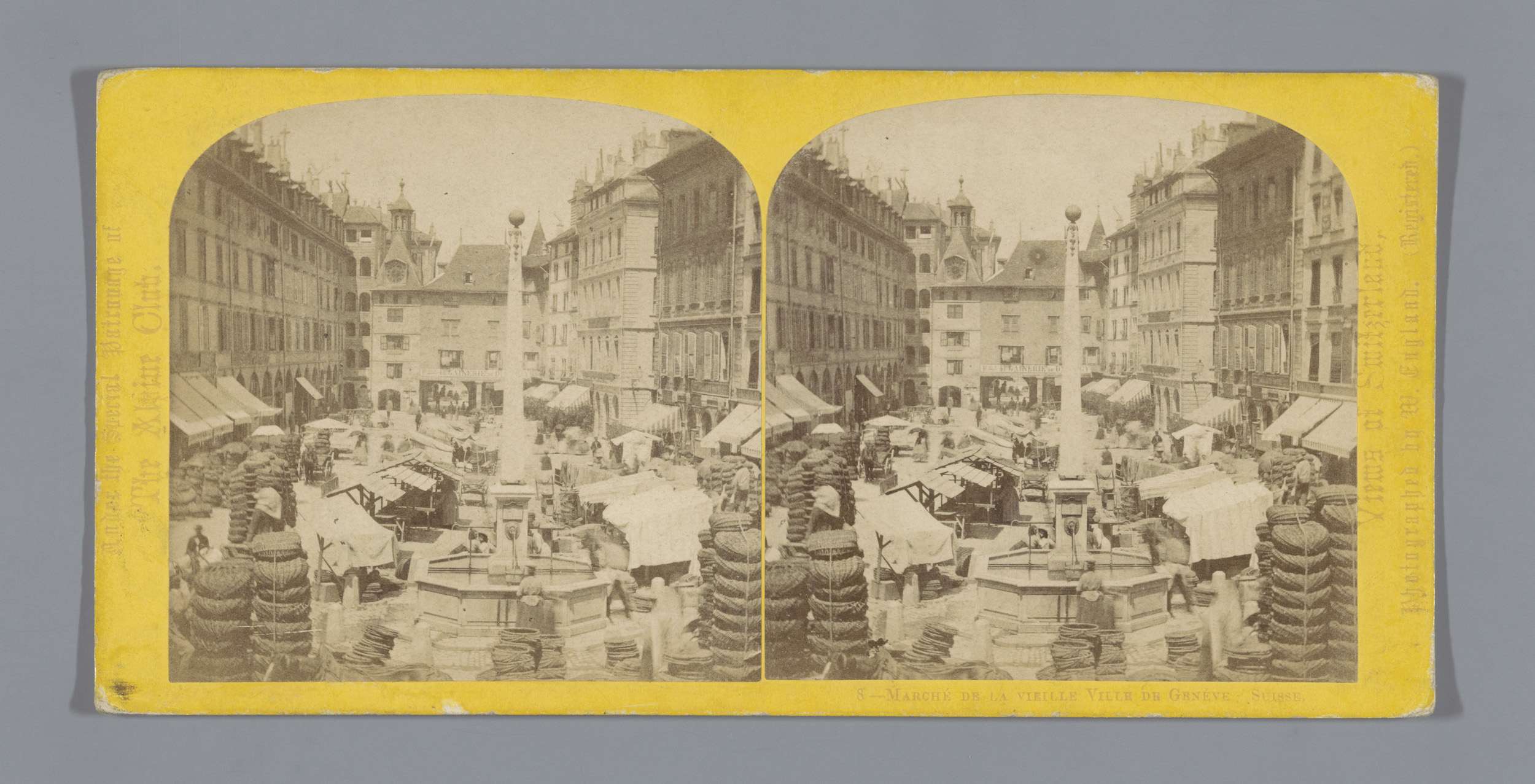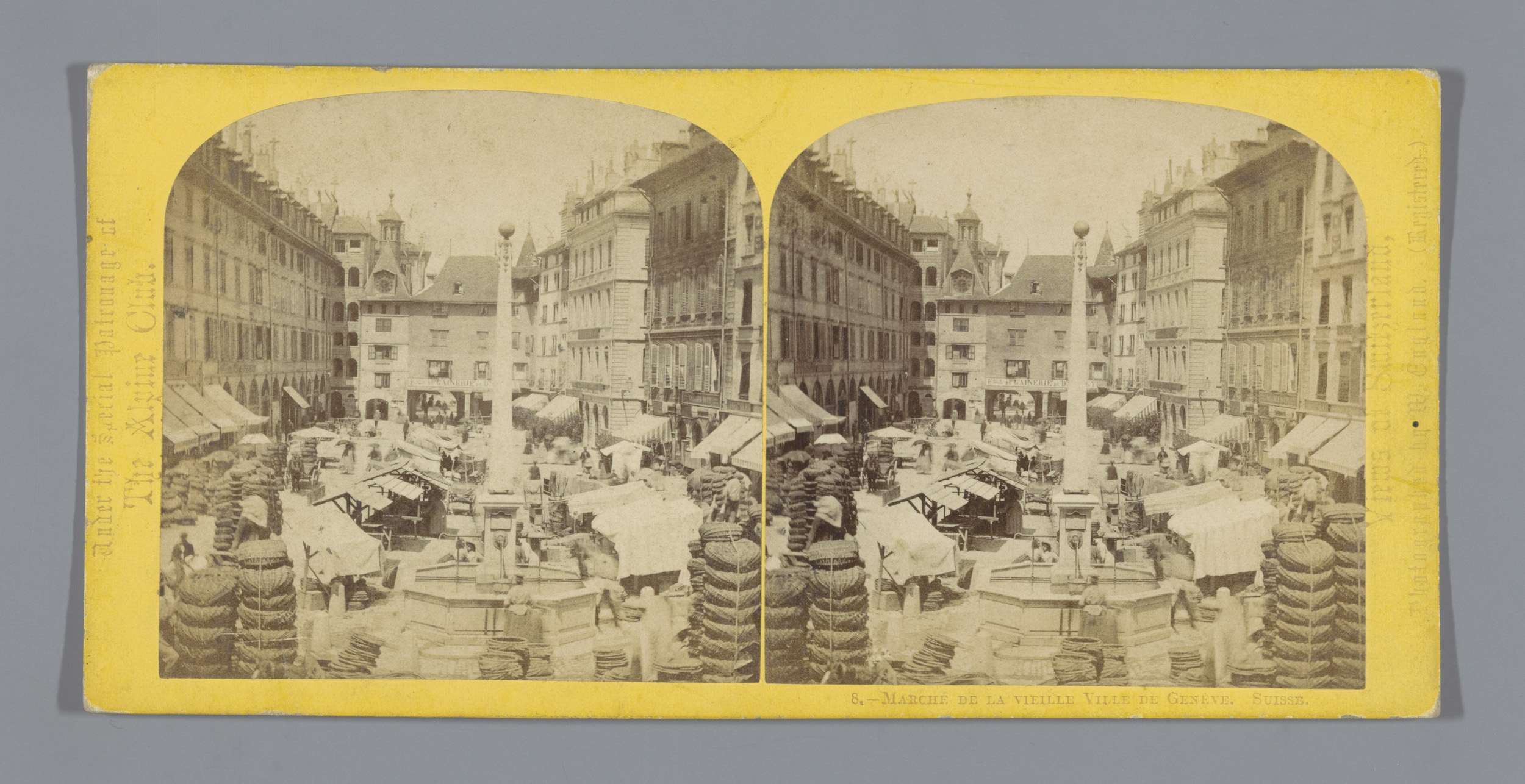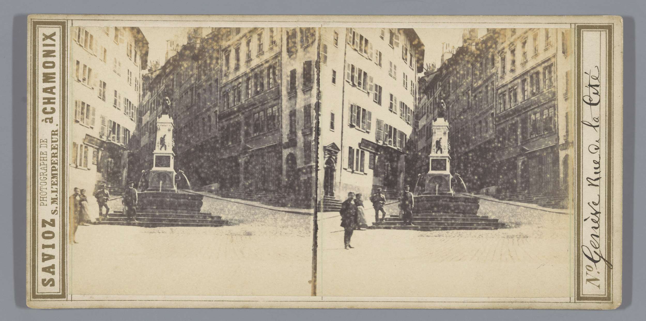 Gezicht op de Rue de la Cité te Genève, met op de vo...