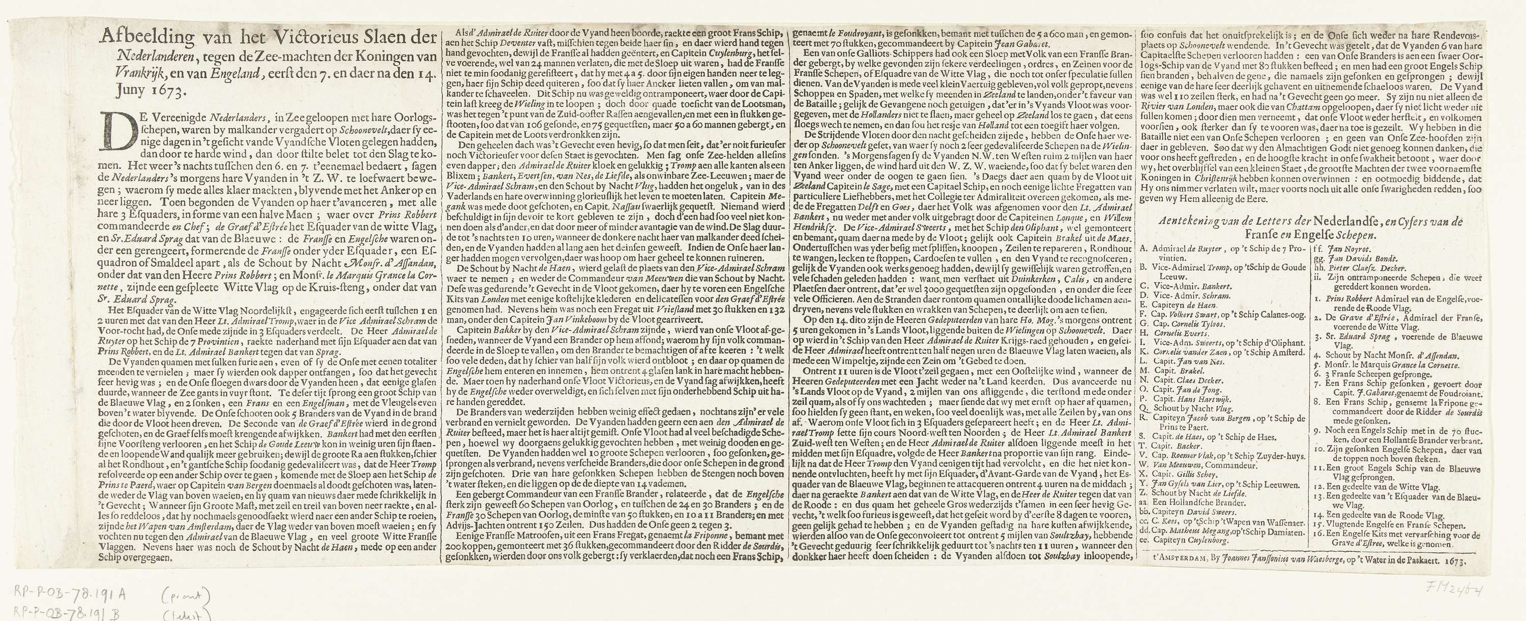 Tekstblad bij de prent van de twee zeeslagen op Scho...