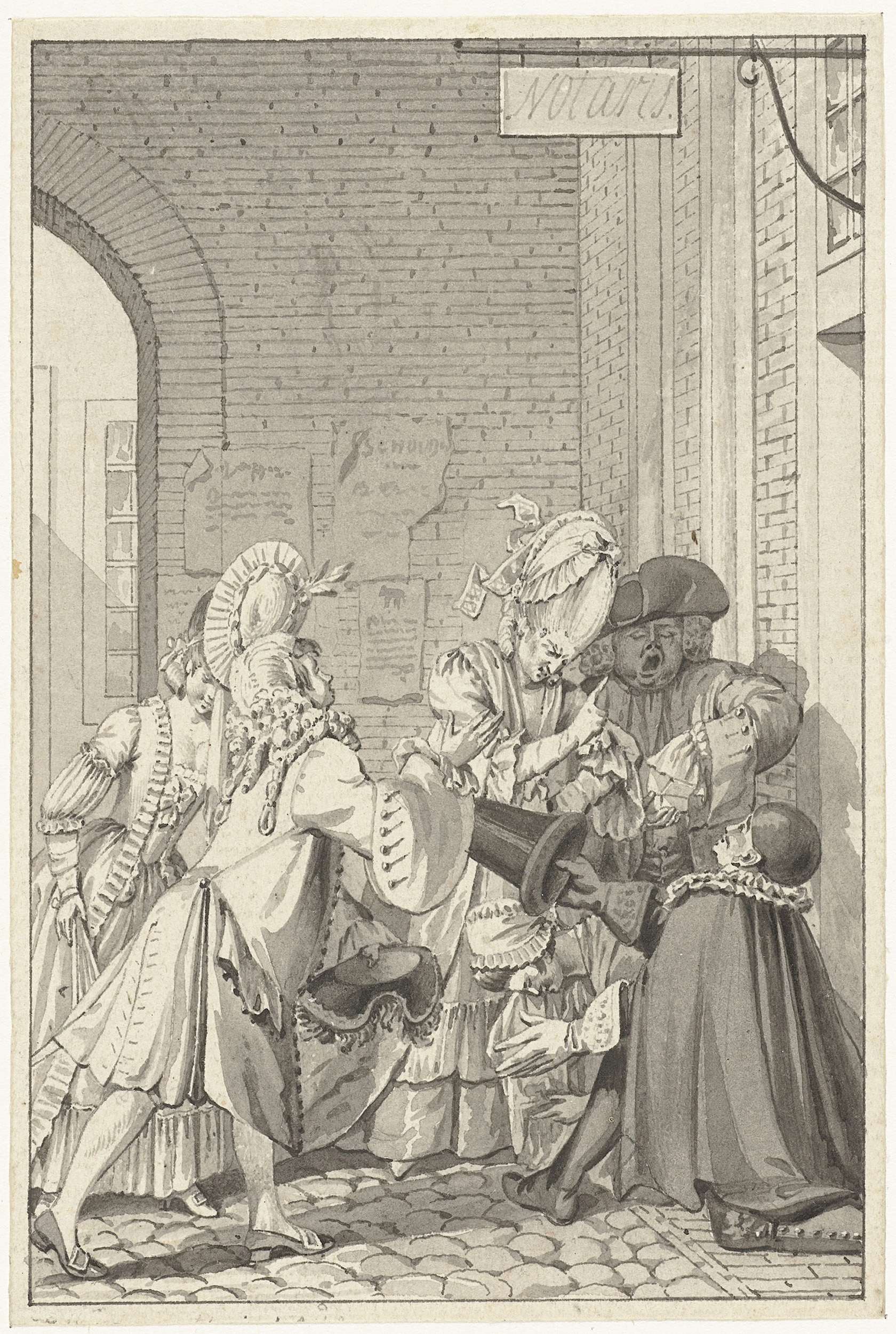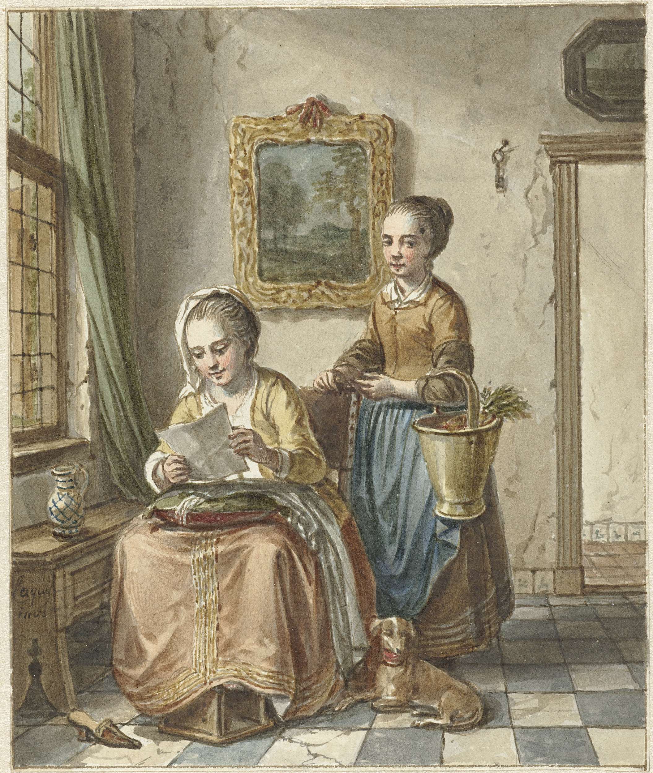 Een dienstmeid bezig een trap voor een huis schoon t...