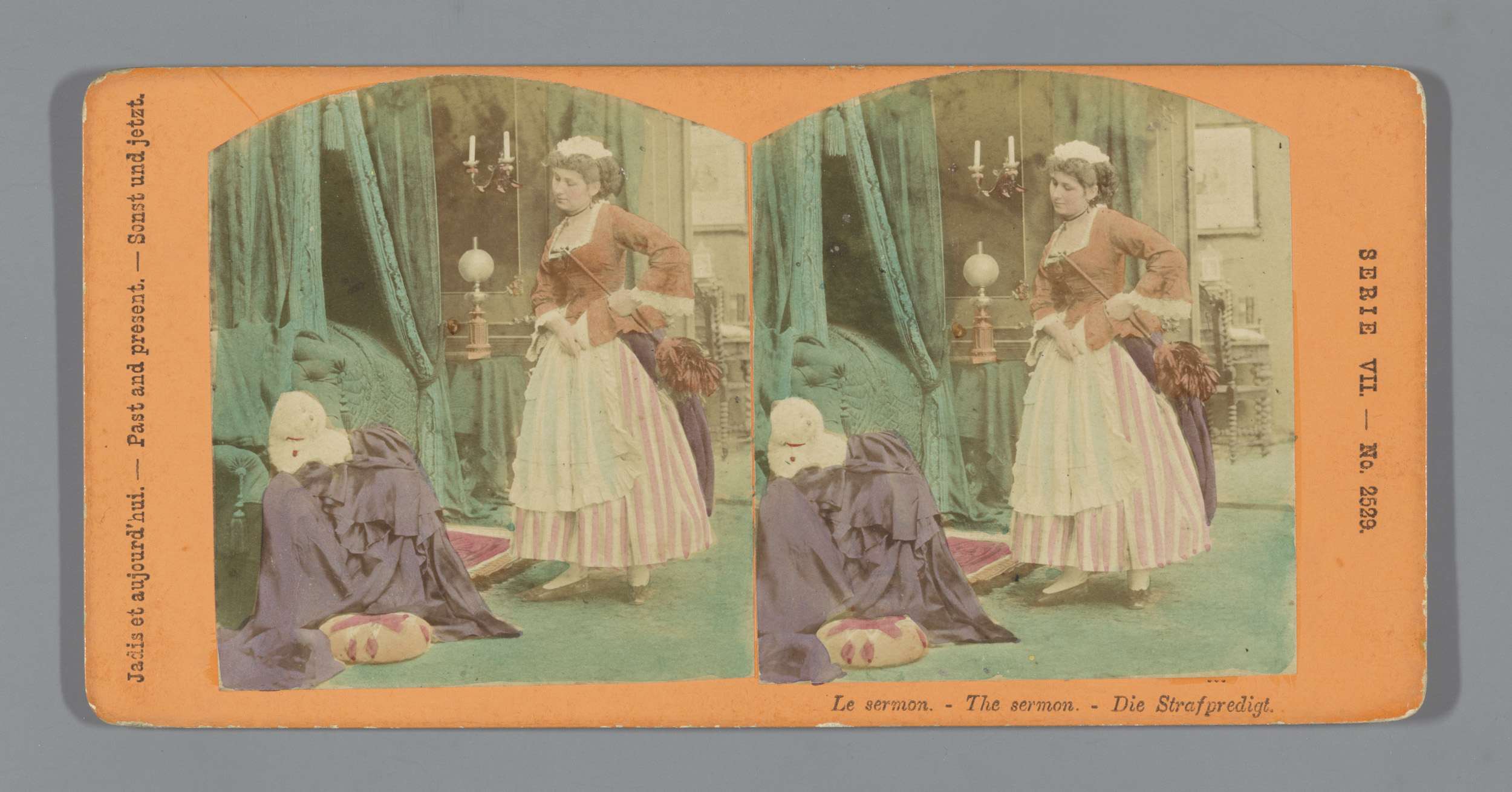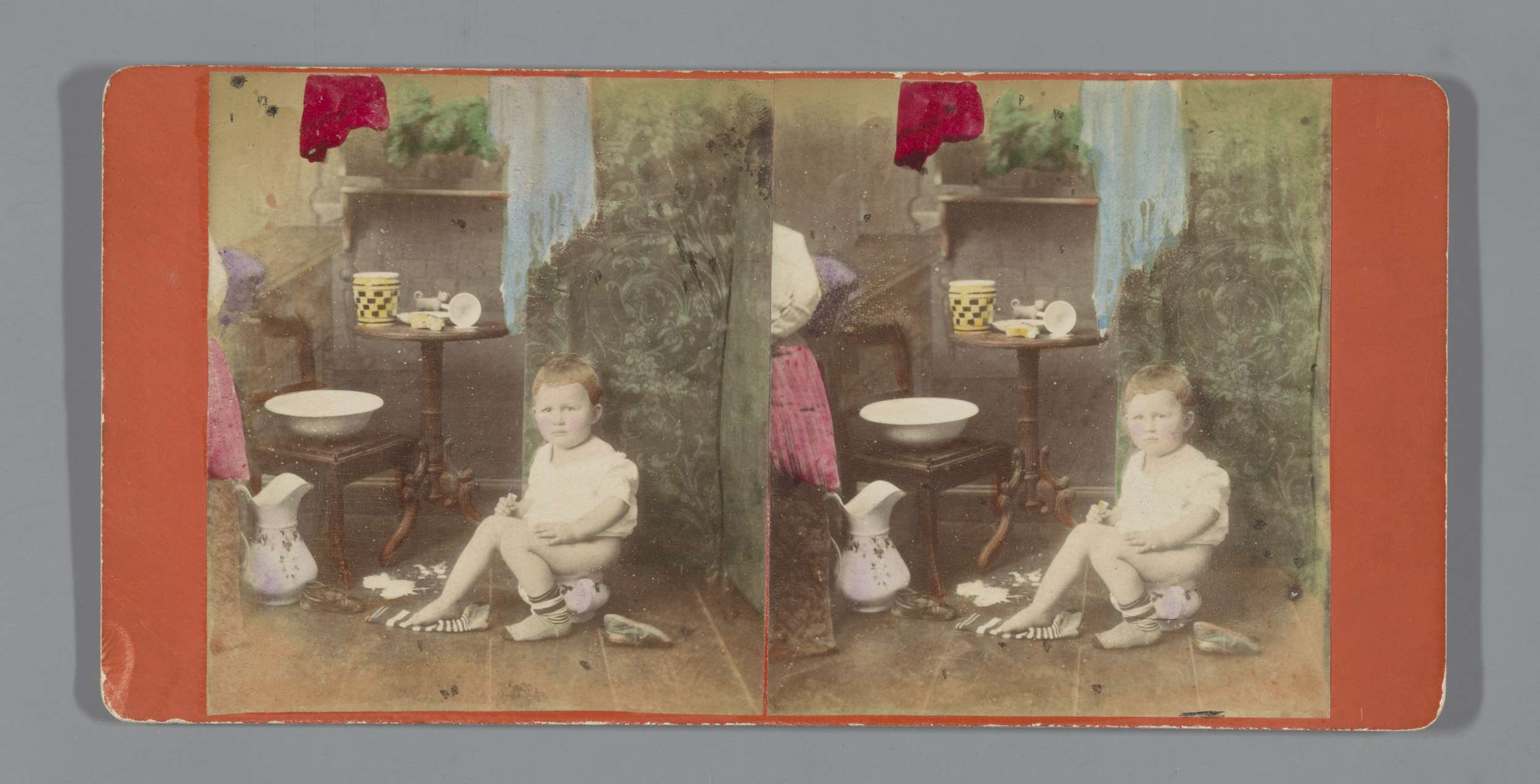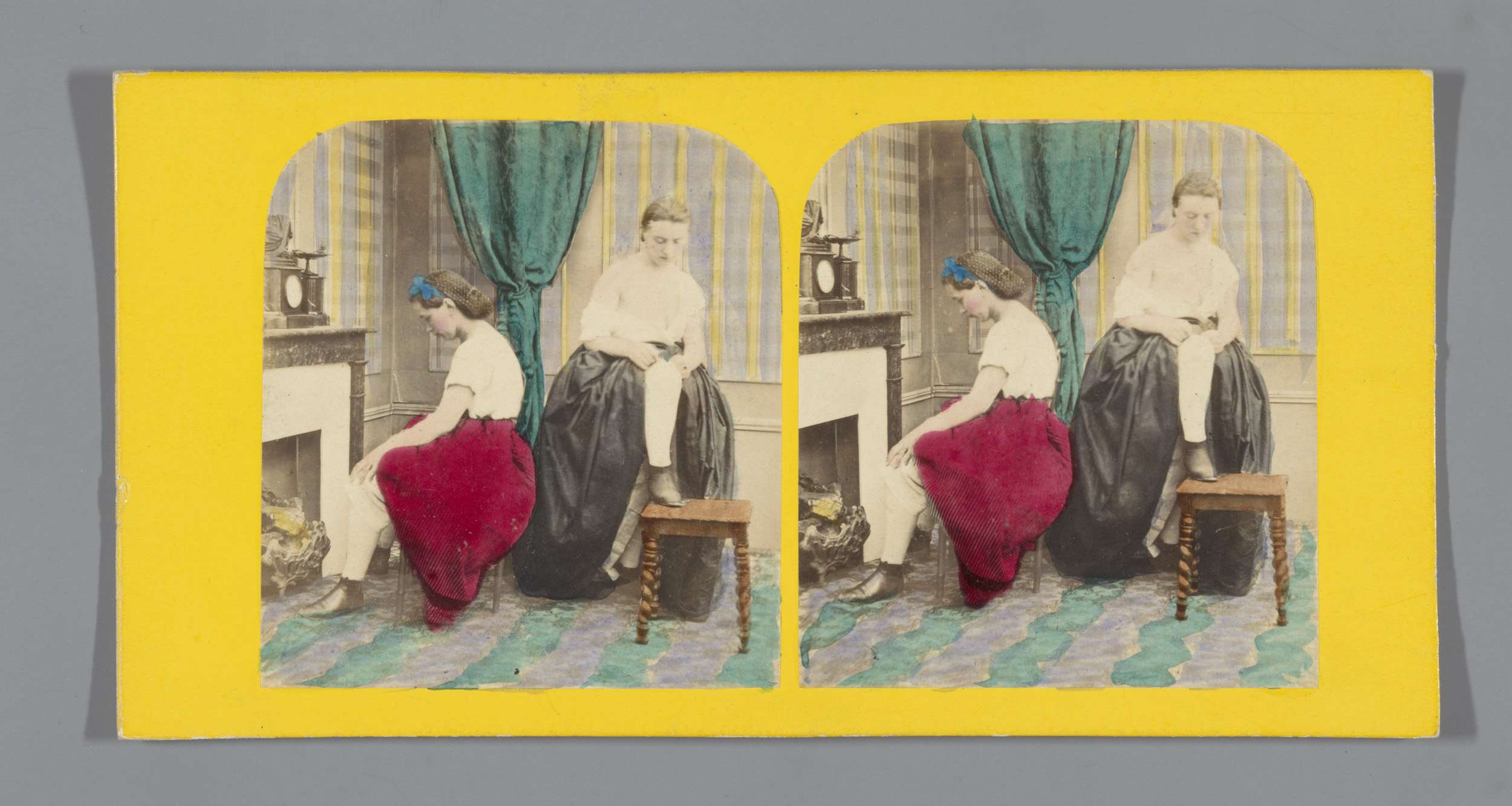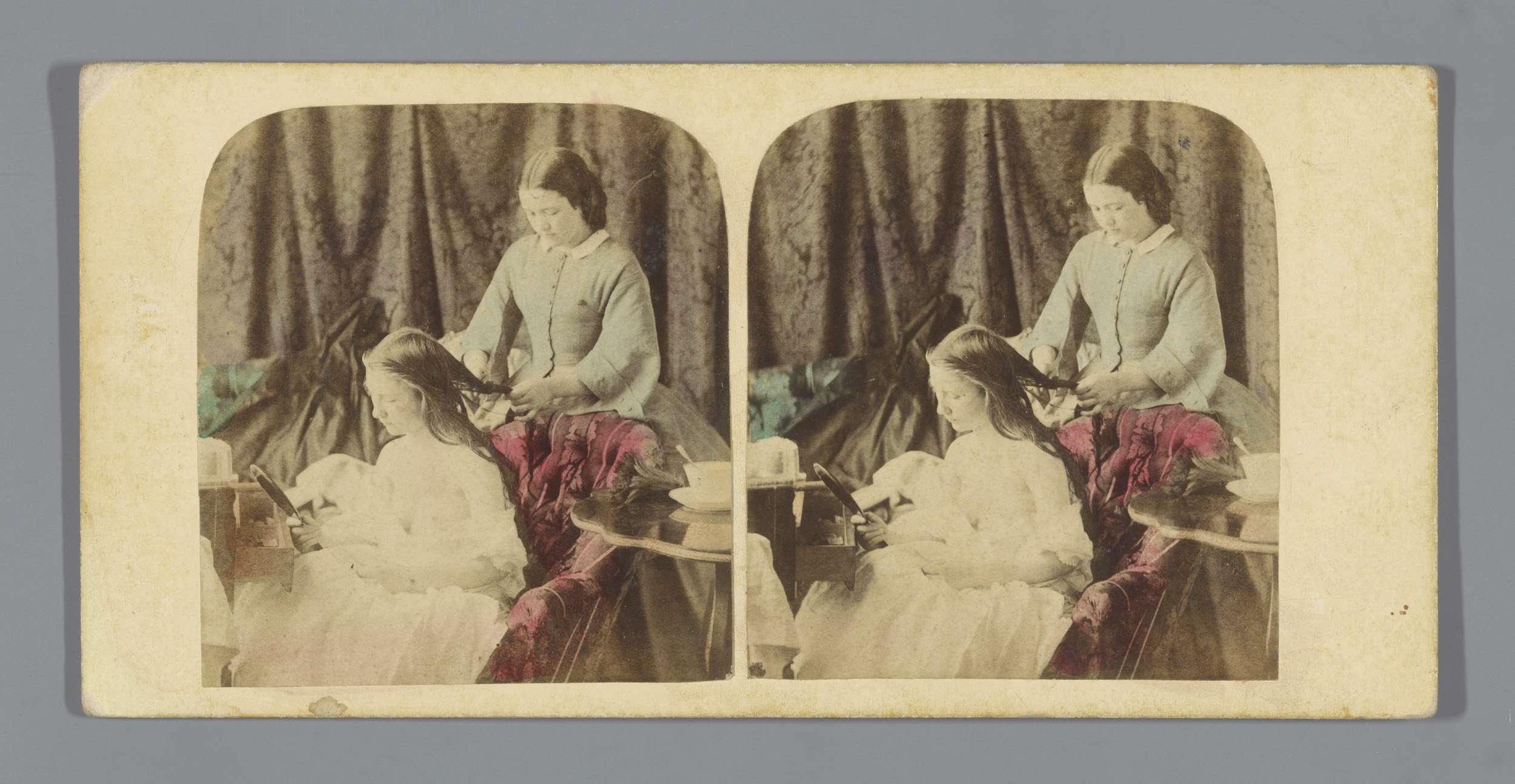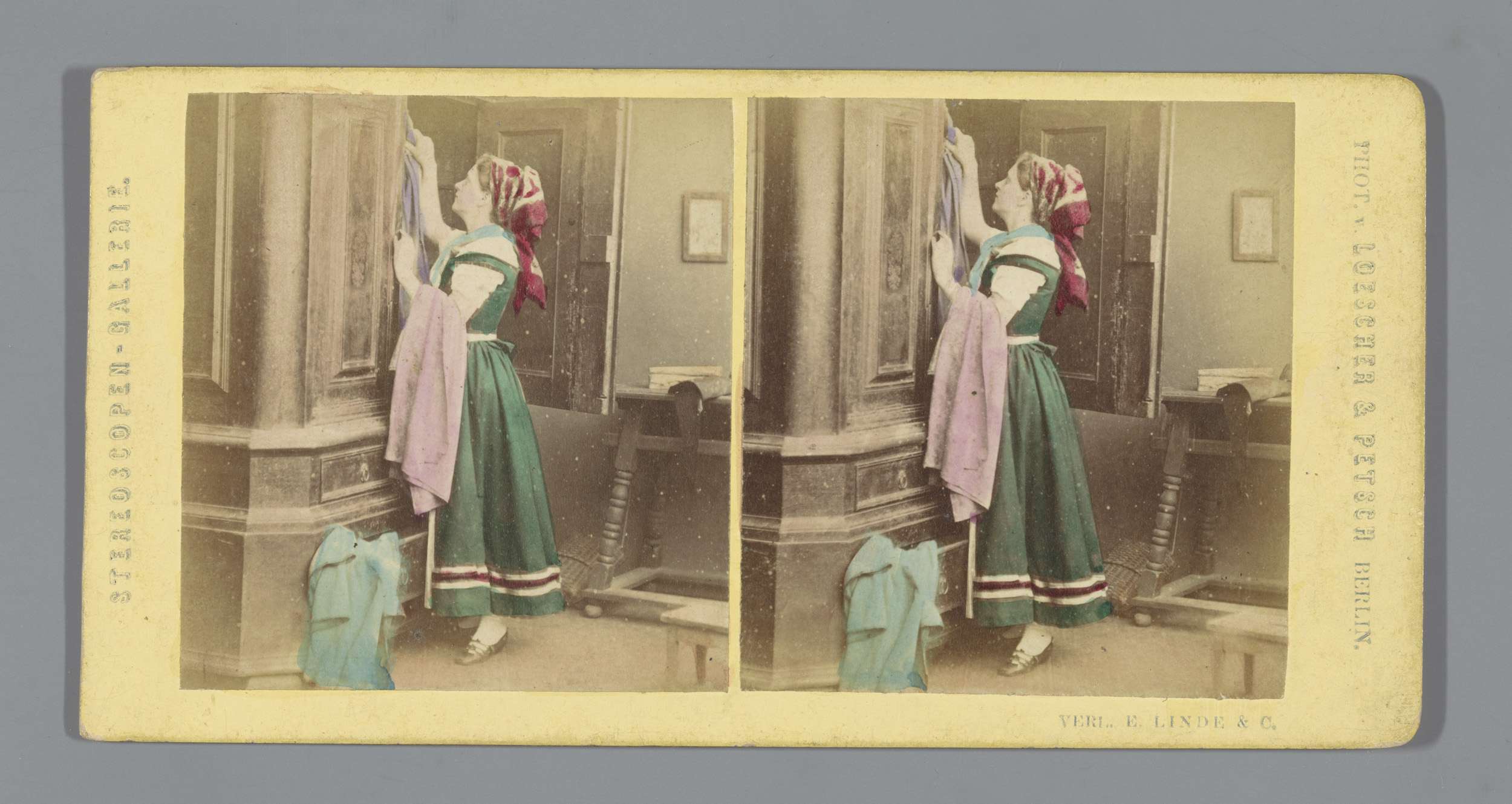 Tafereel met een wassende vrouw naast een vrouw in bed