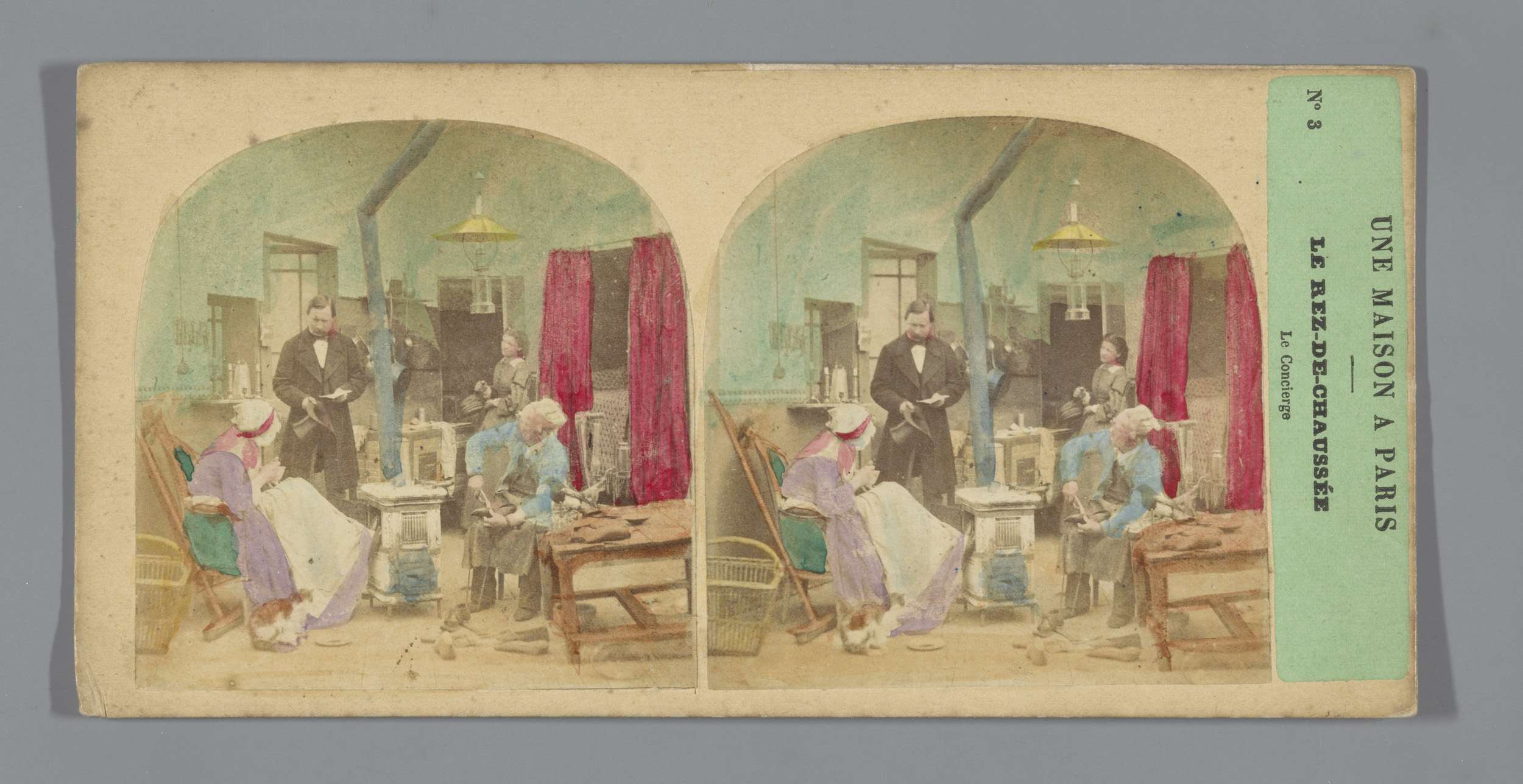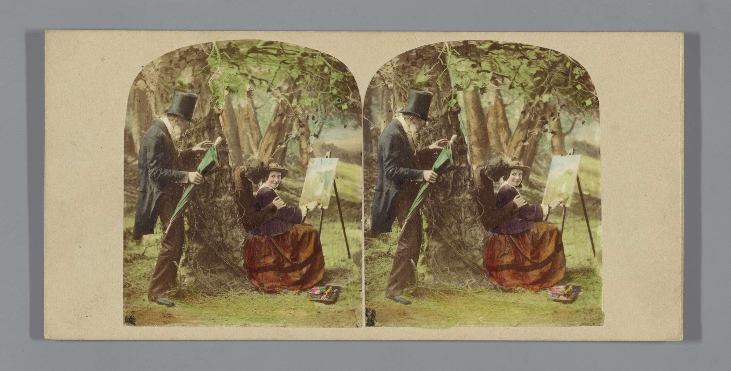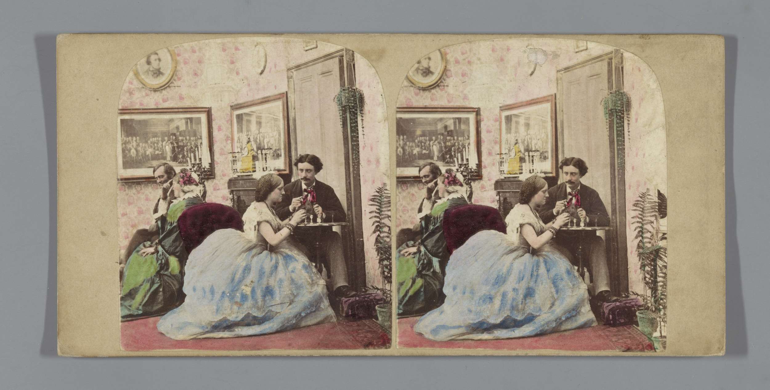 Genrescene met op de achtergrond affiche 'Sketches f...