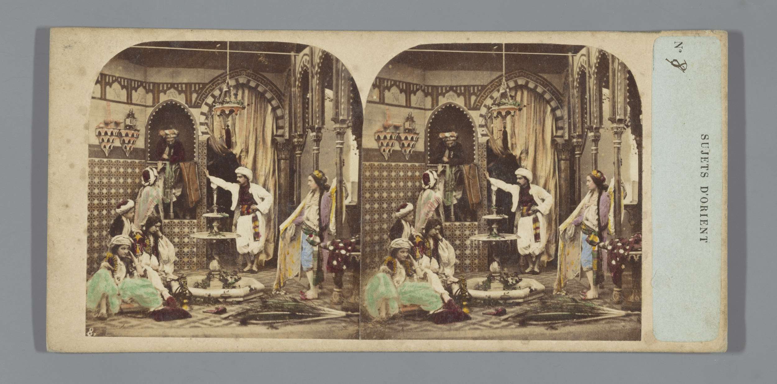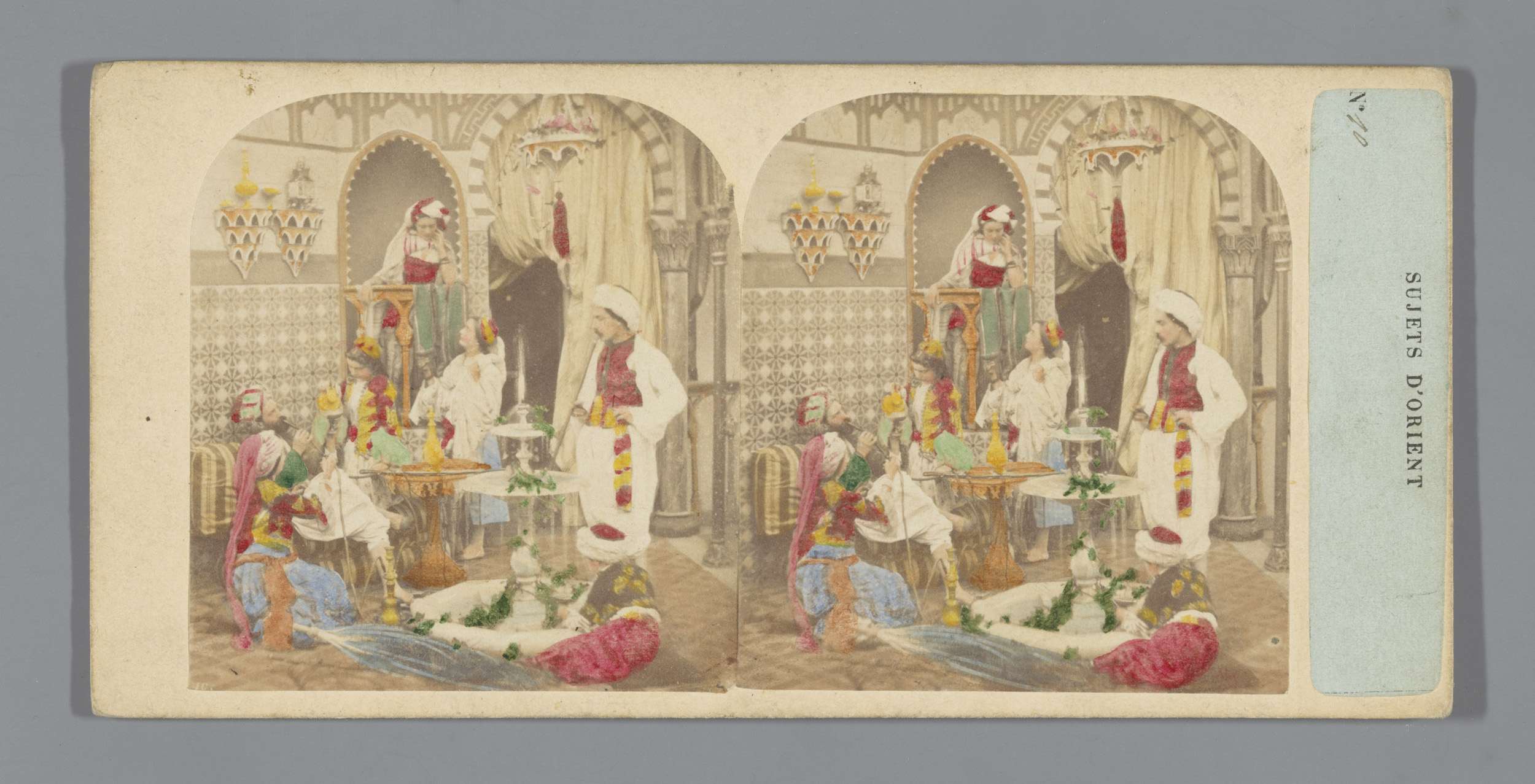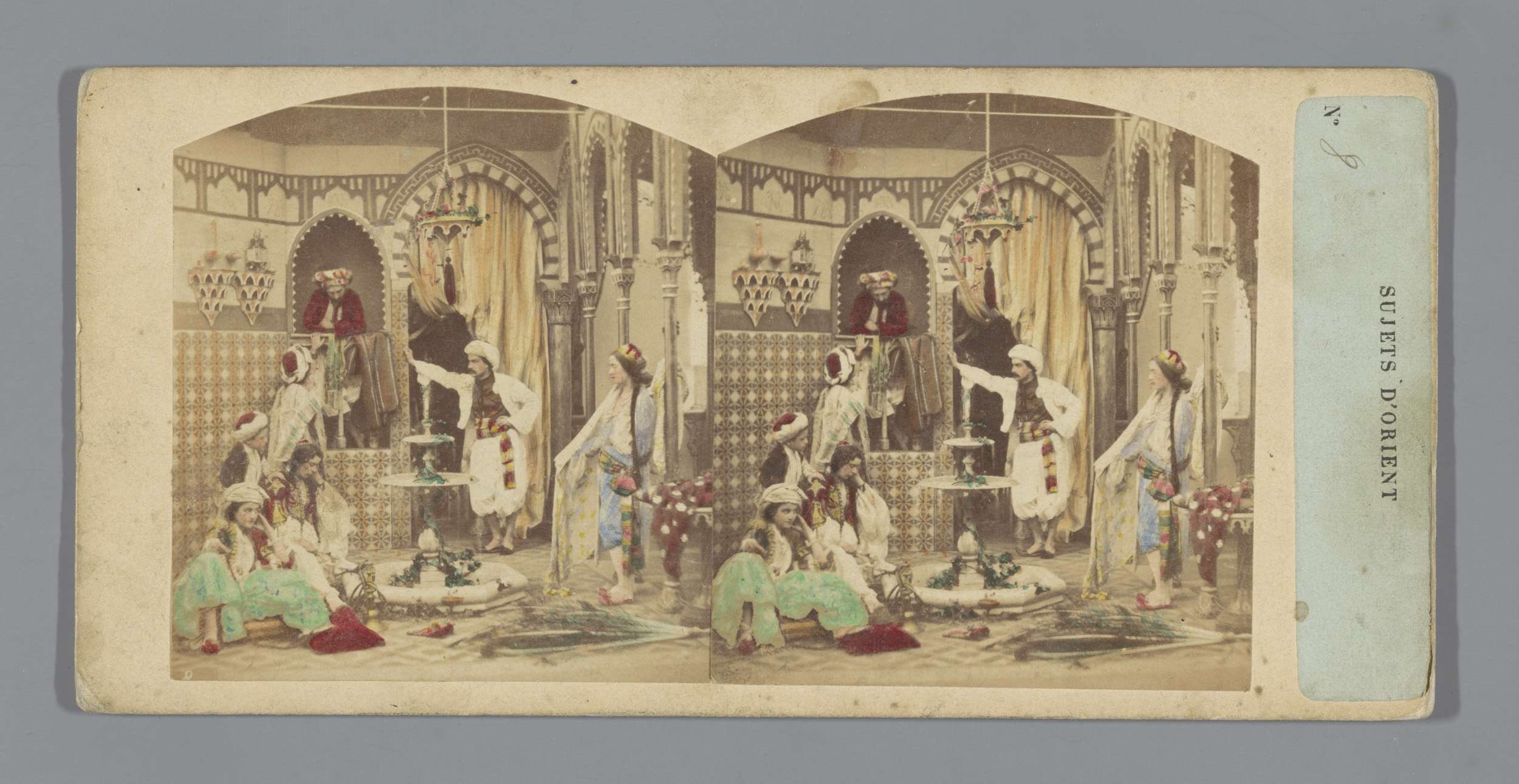 Genrescene met op de achtergrond affiche 'Sketches f...