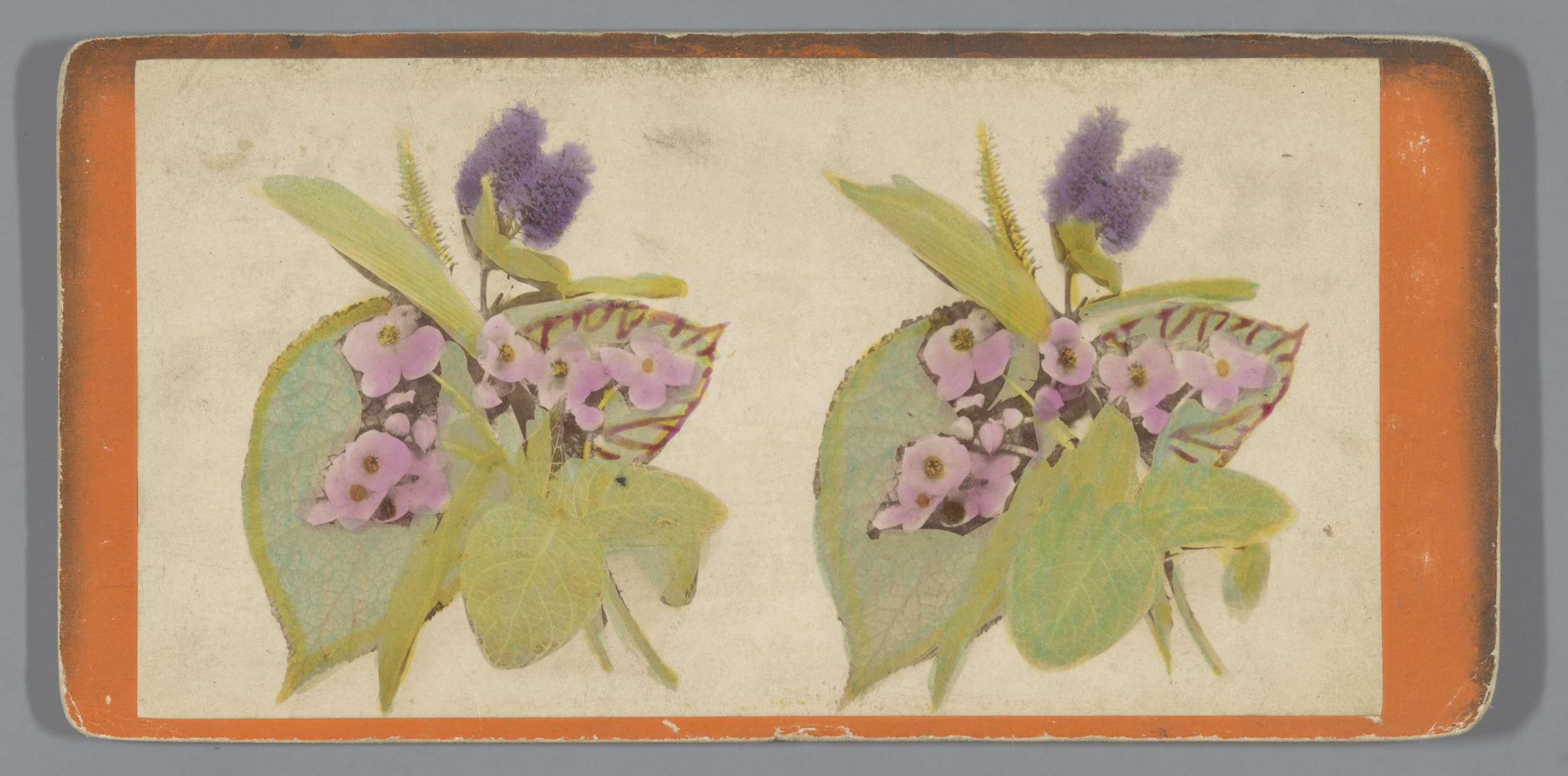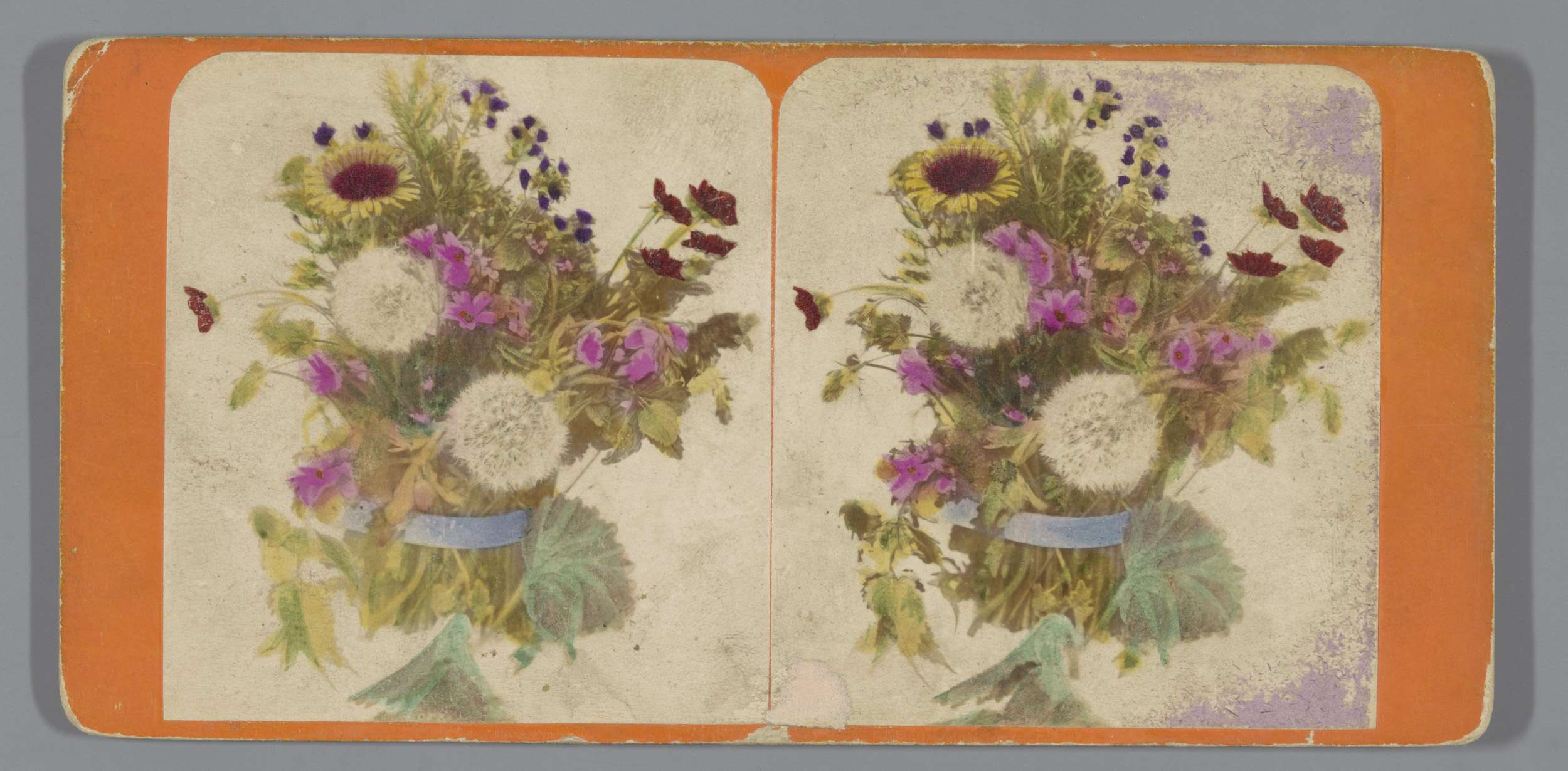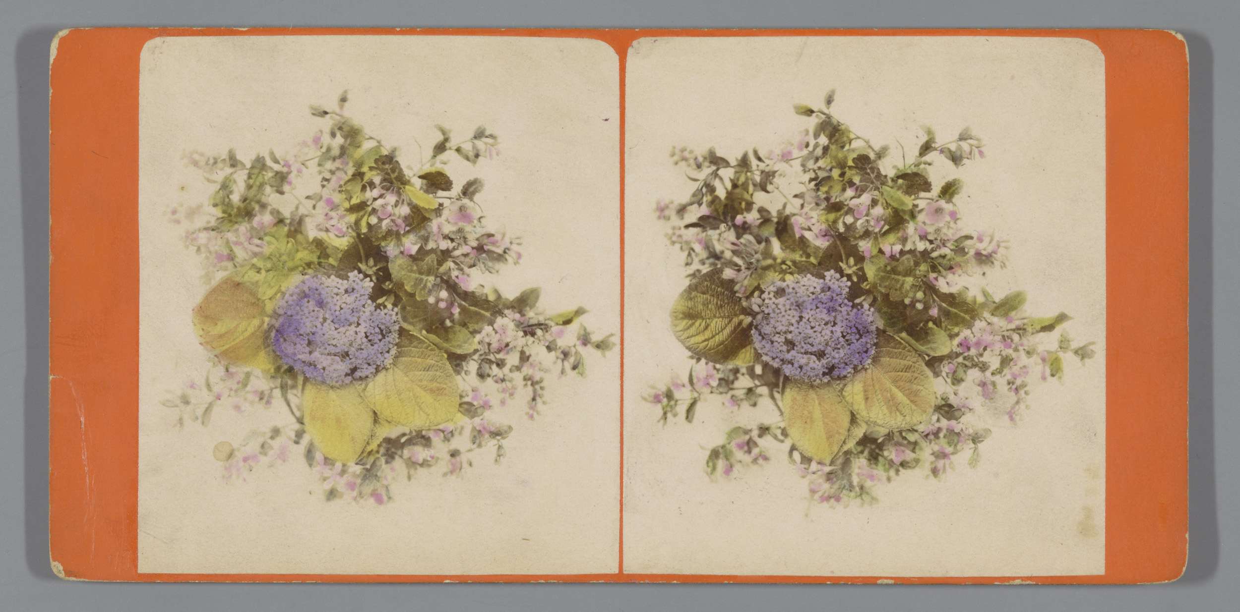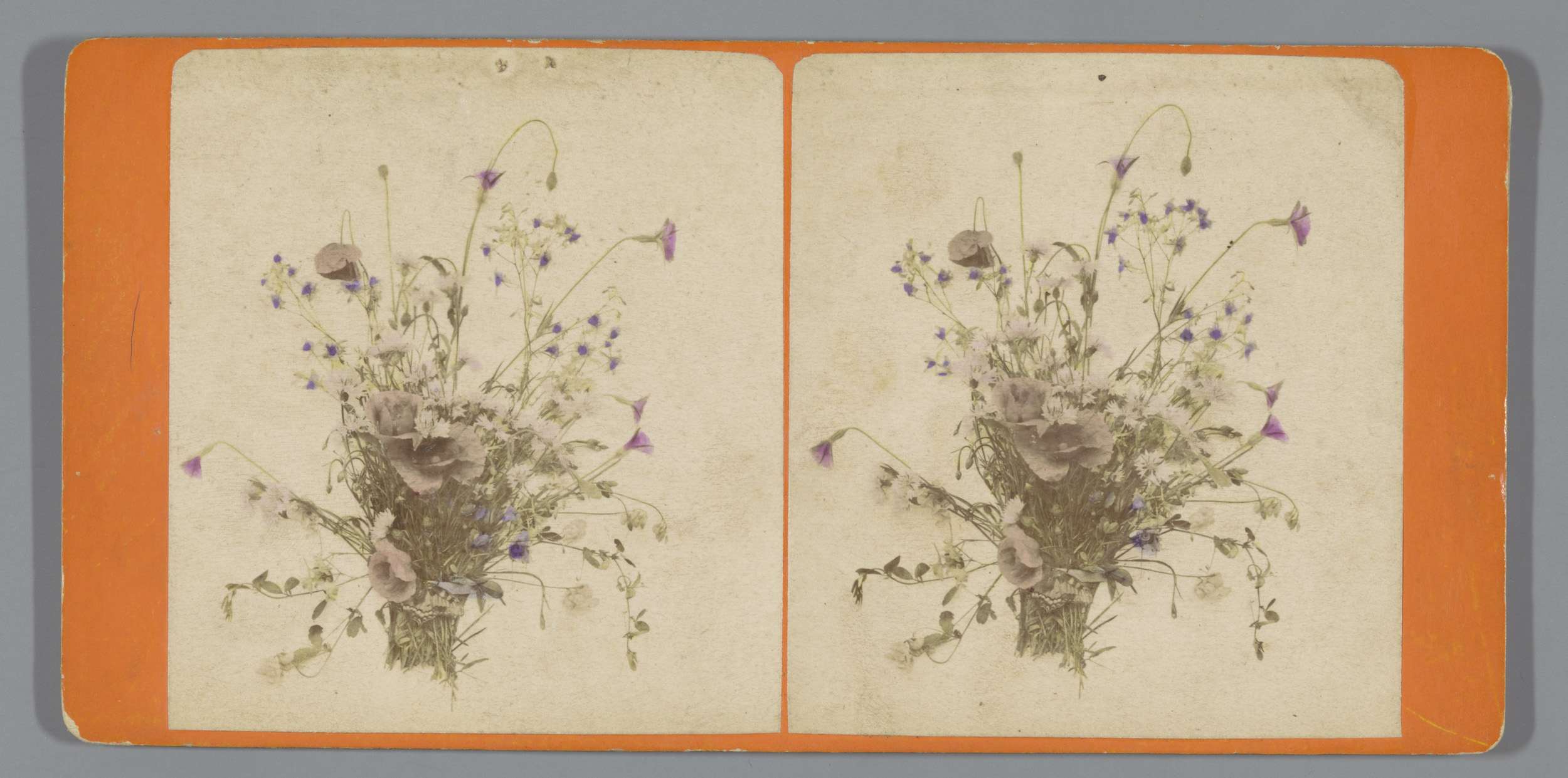 Bloemstilleven met taxus, roos, anjer en fuchsia