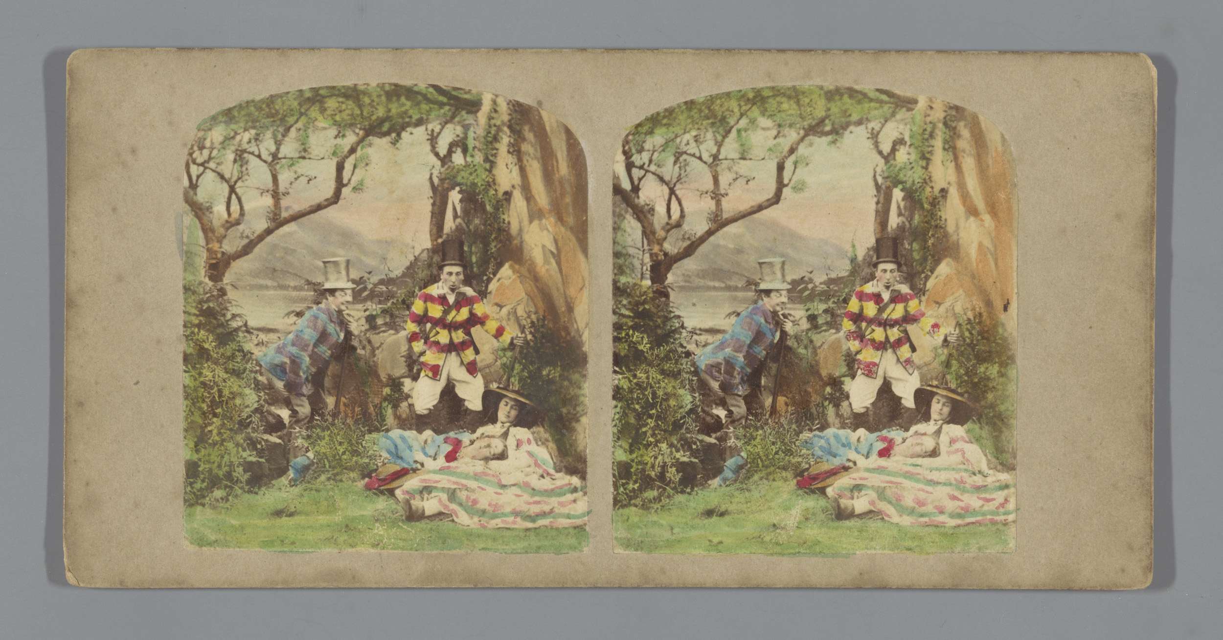 Twee mannen met hoge hoeden overvallen twee slapende...
