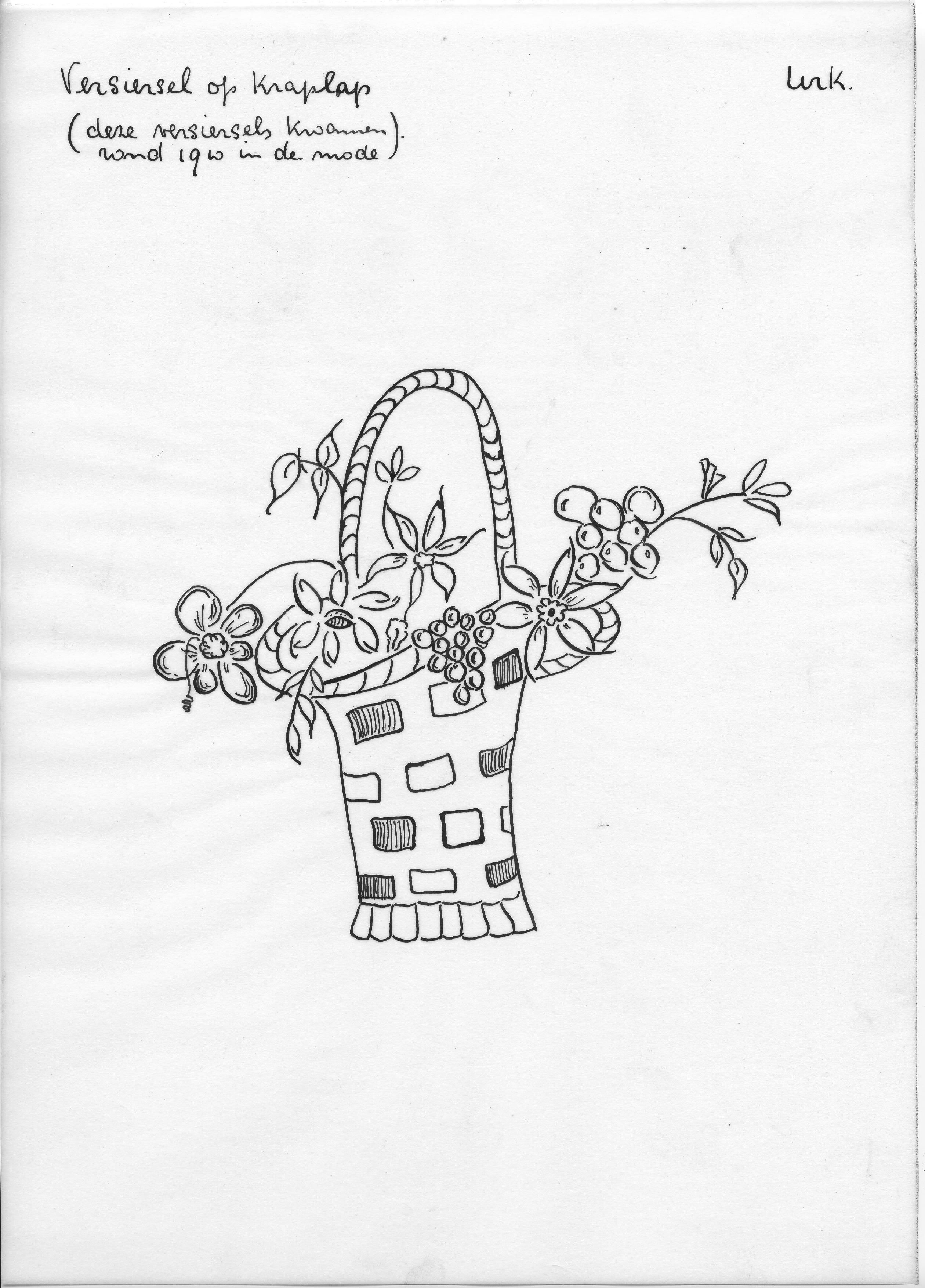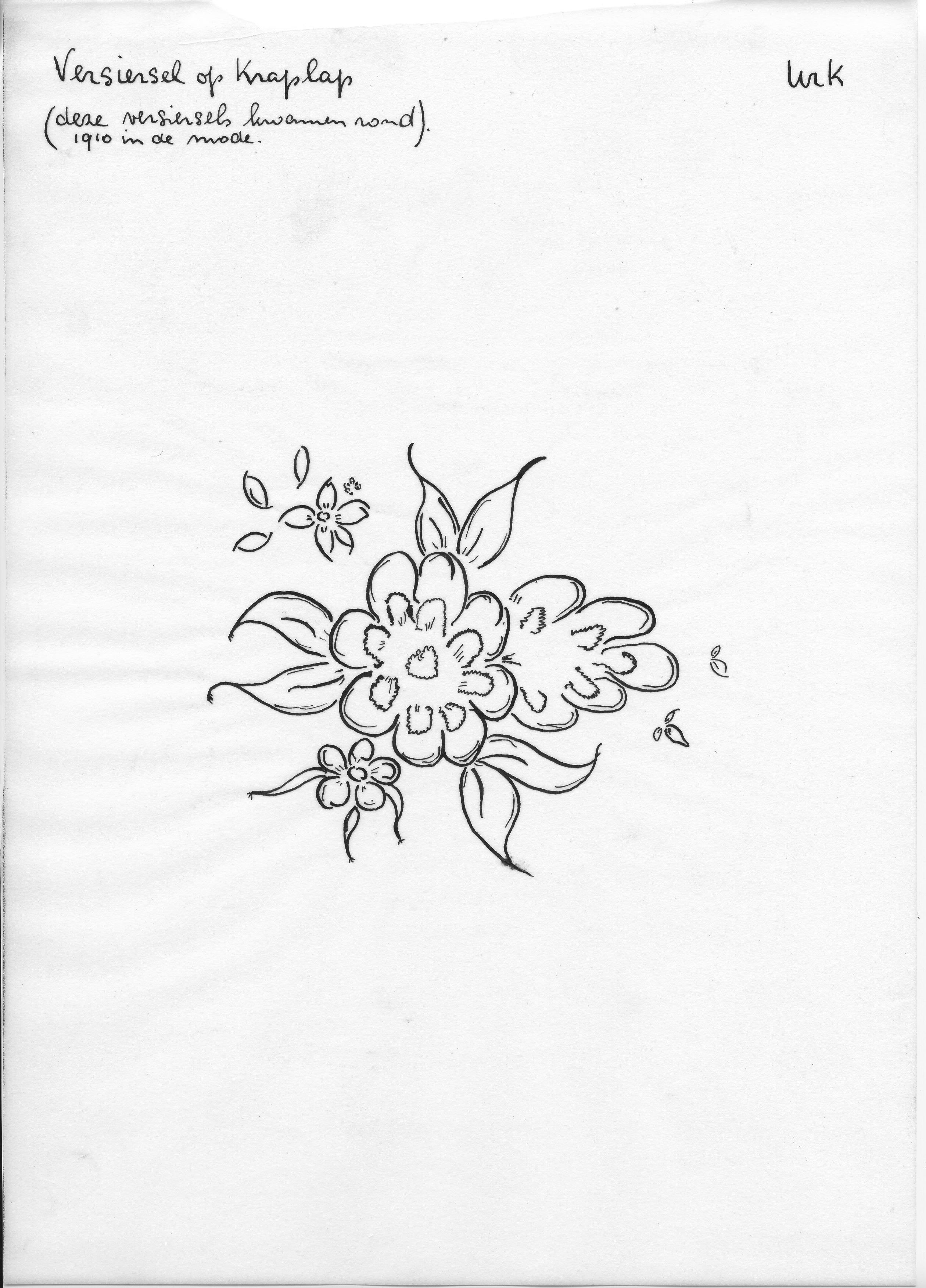 Tekening van een versiersel voor kraplappen, Urk (op...