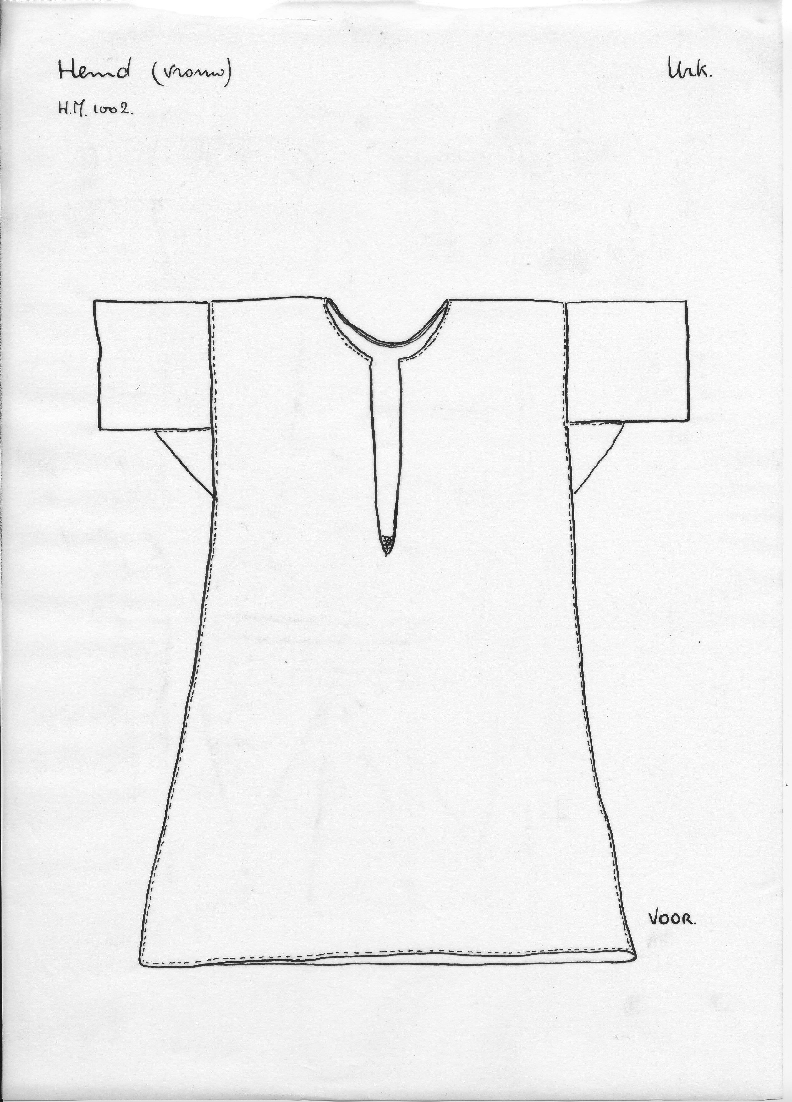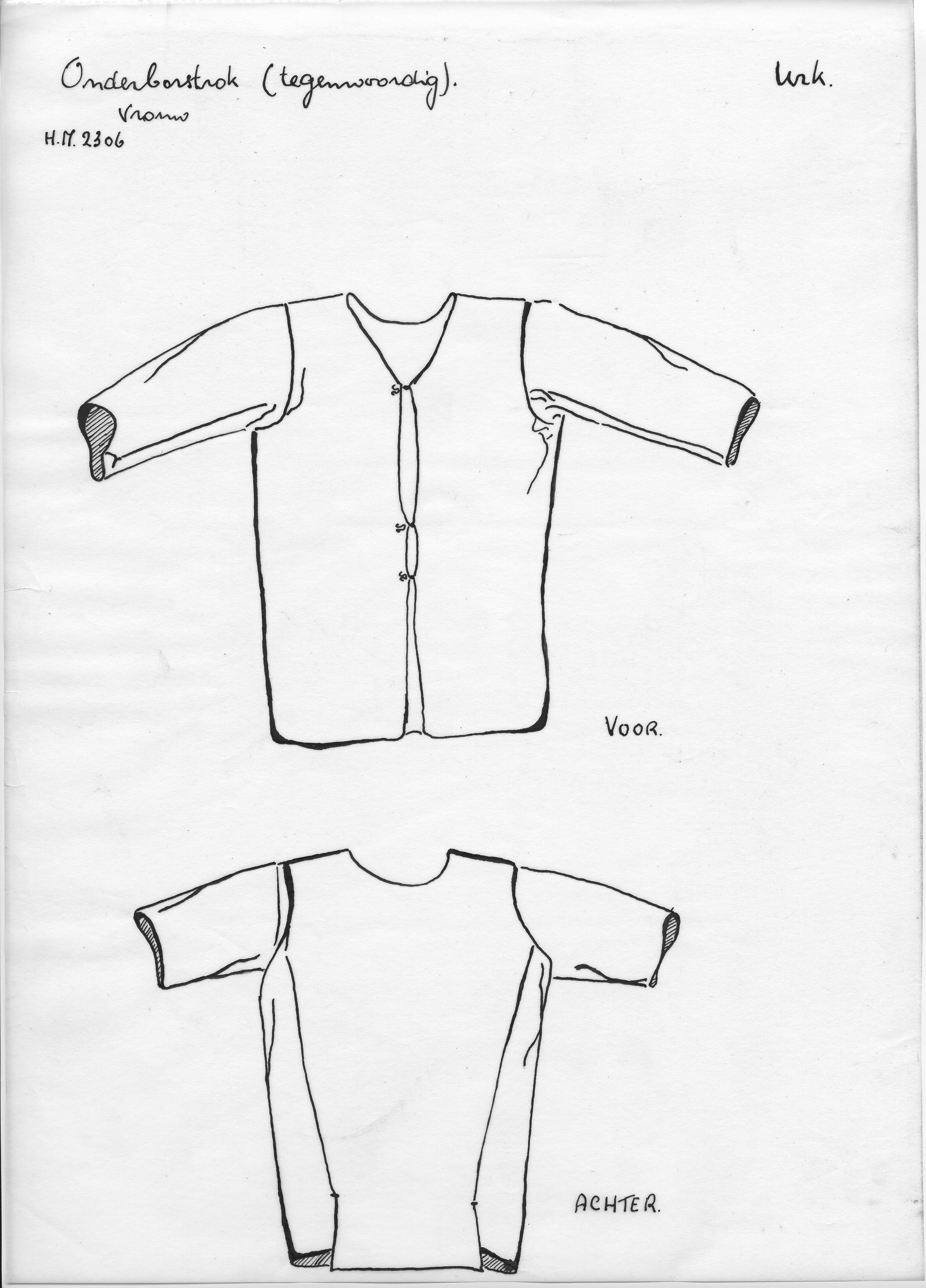 Tekening van een vrouwenhemd, Urk (opmetingstekening)