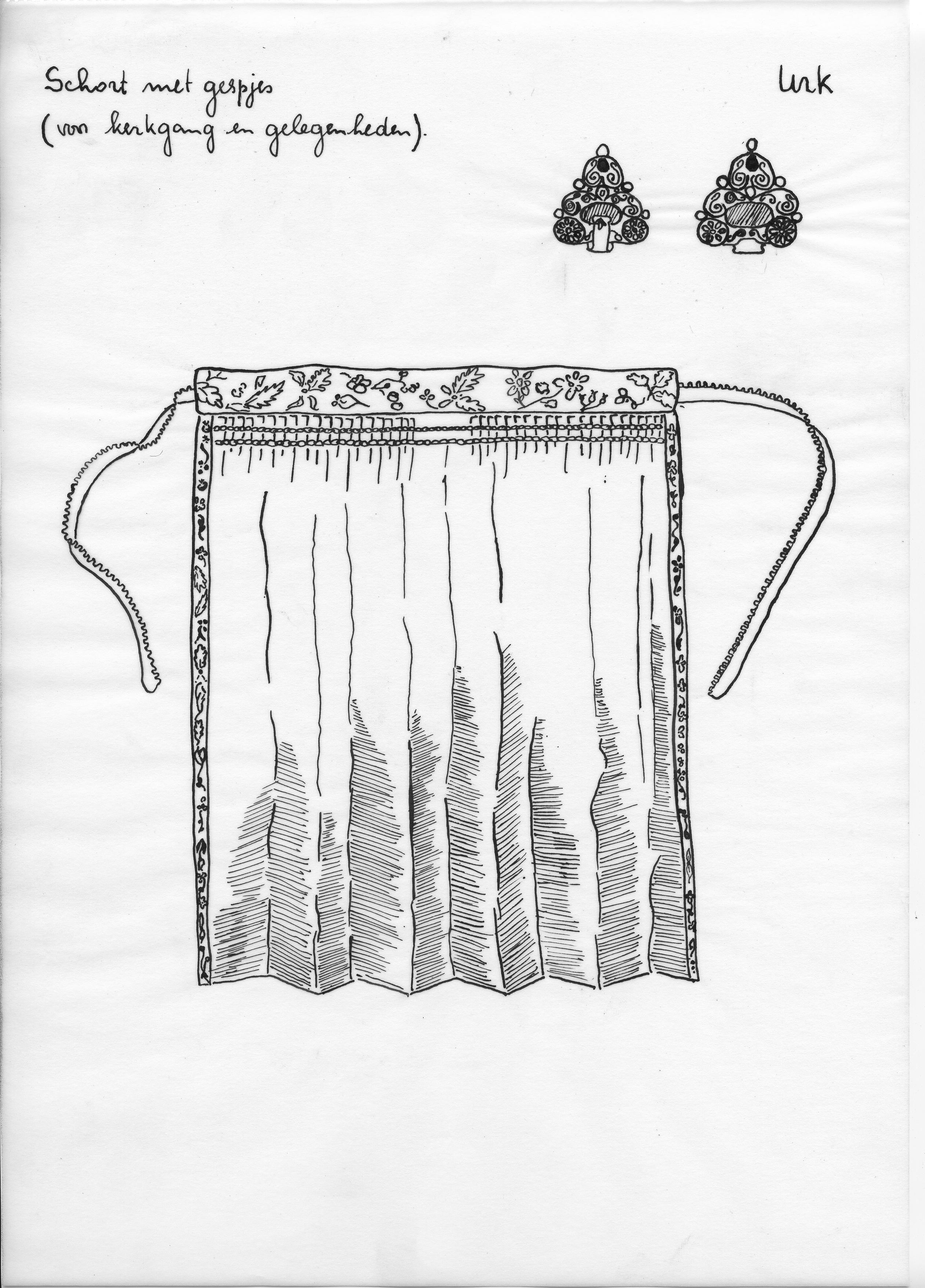 Tekening van een schort en gespjes, Urk (opmetingste...