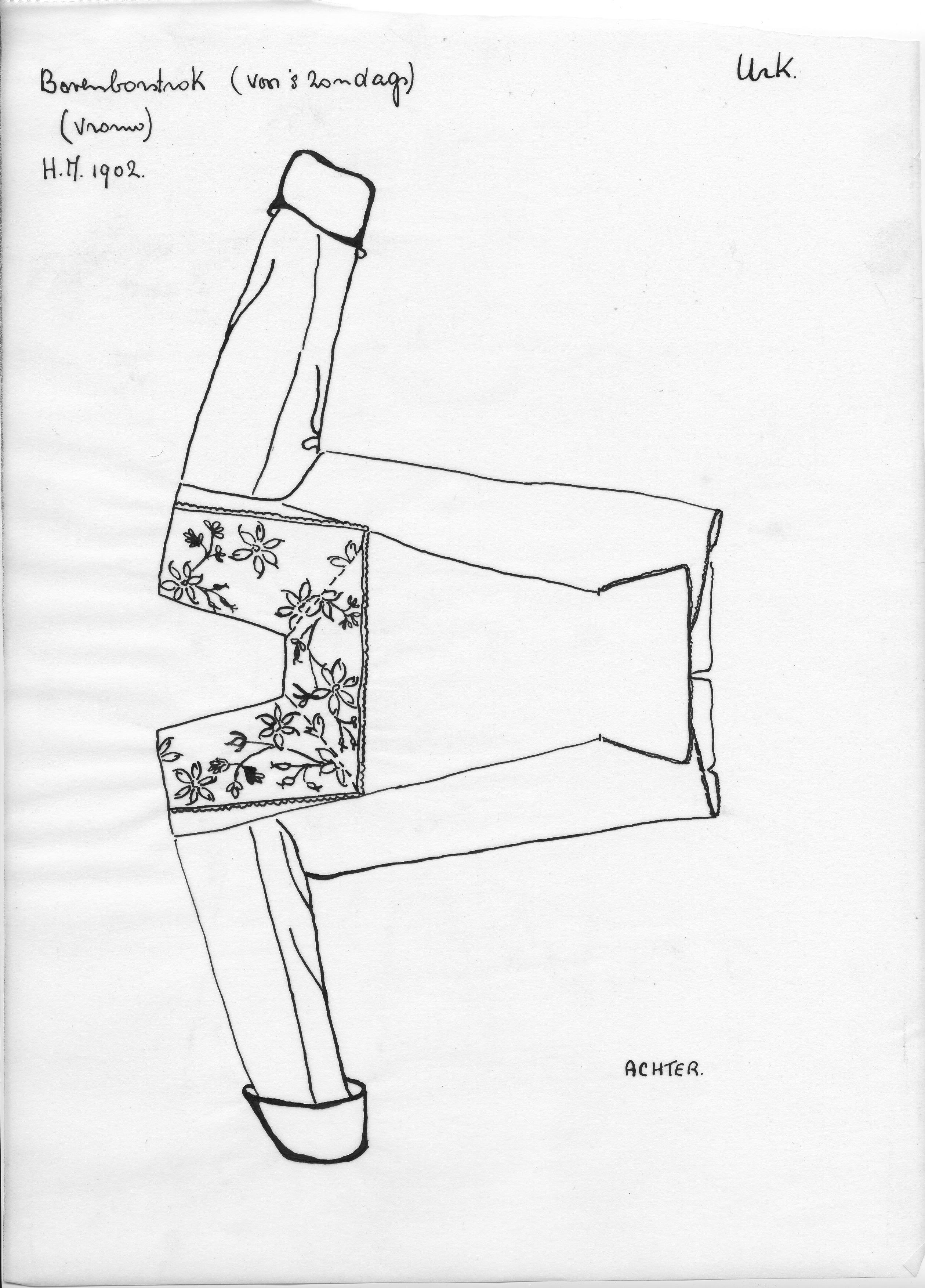 Tekening van een zondagse vrouwenbovenborstrok, Urk ...