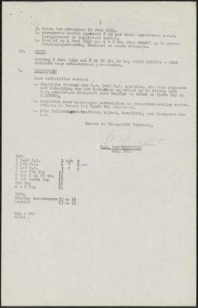 Brief van Troepencommando Tapanuli met Bevel voor de...