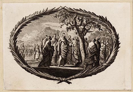 Jezus spreekt Zacheüs aan die in de vijgenboom is ge...
