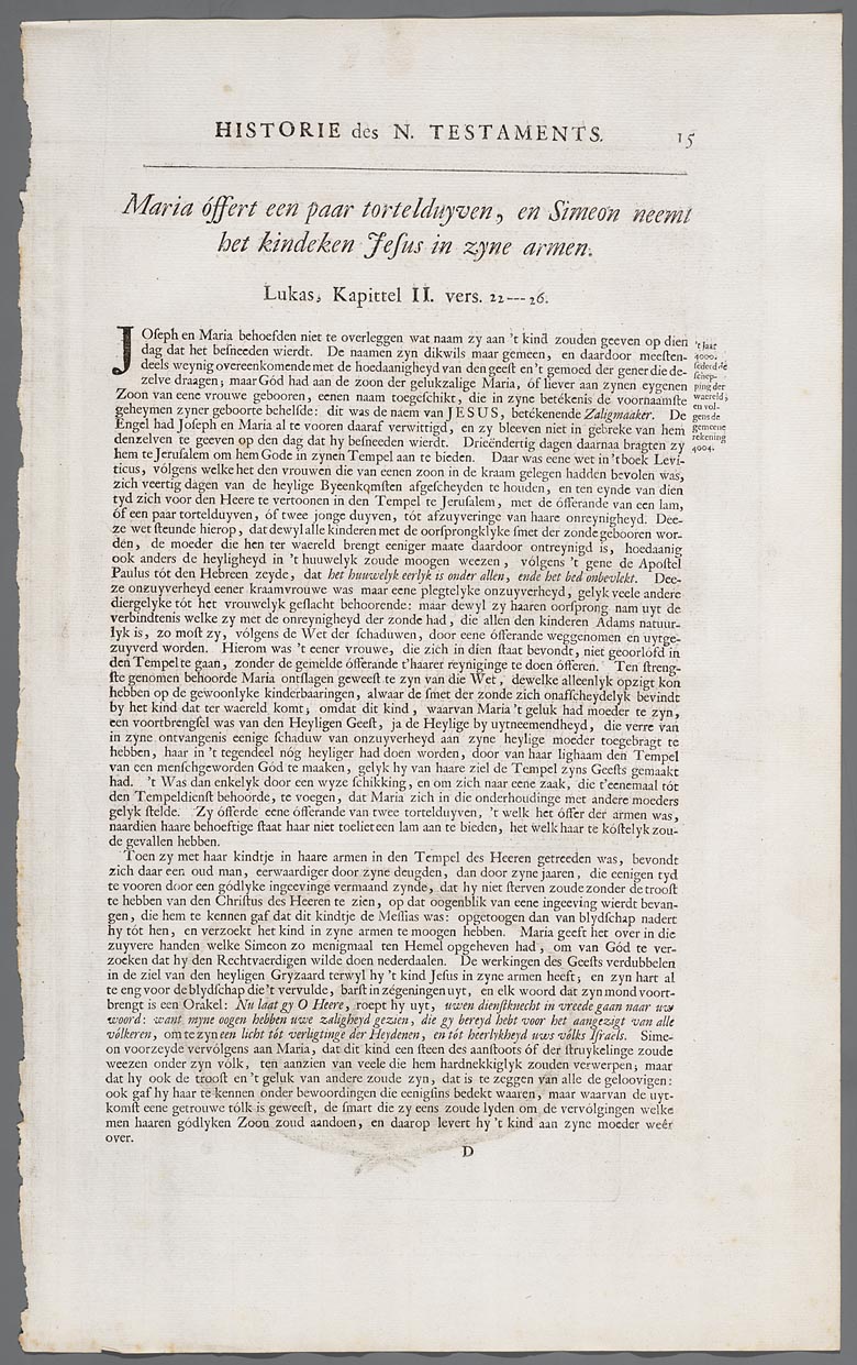 Historie des N. Testaments, Maria offert een paar to...