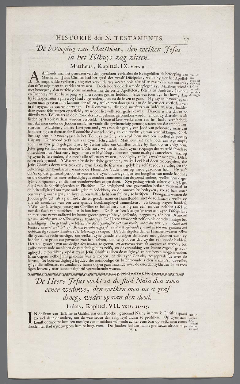 Historie des N. Testaments, De beroeping van Mattheu...