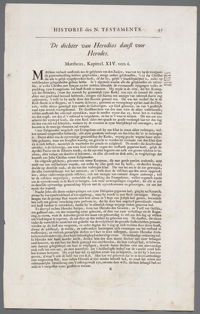 Historie des N. Testaments, De dochter van Herodias ...