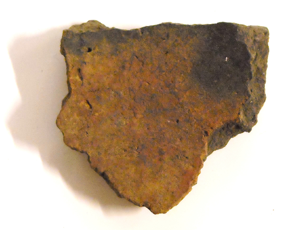 Scherf van een urn, met inkervingen, gevonden in Spe...